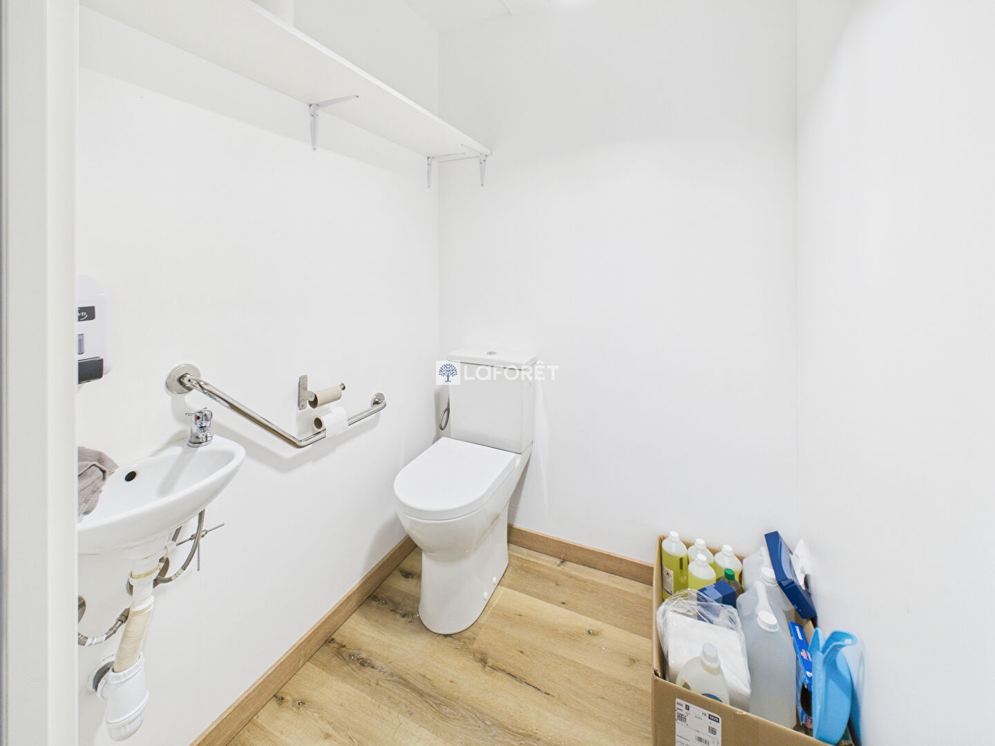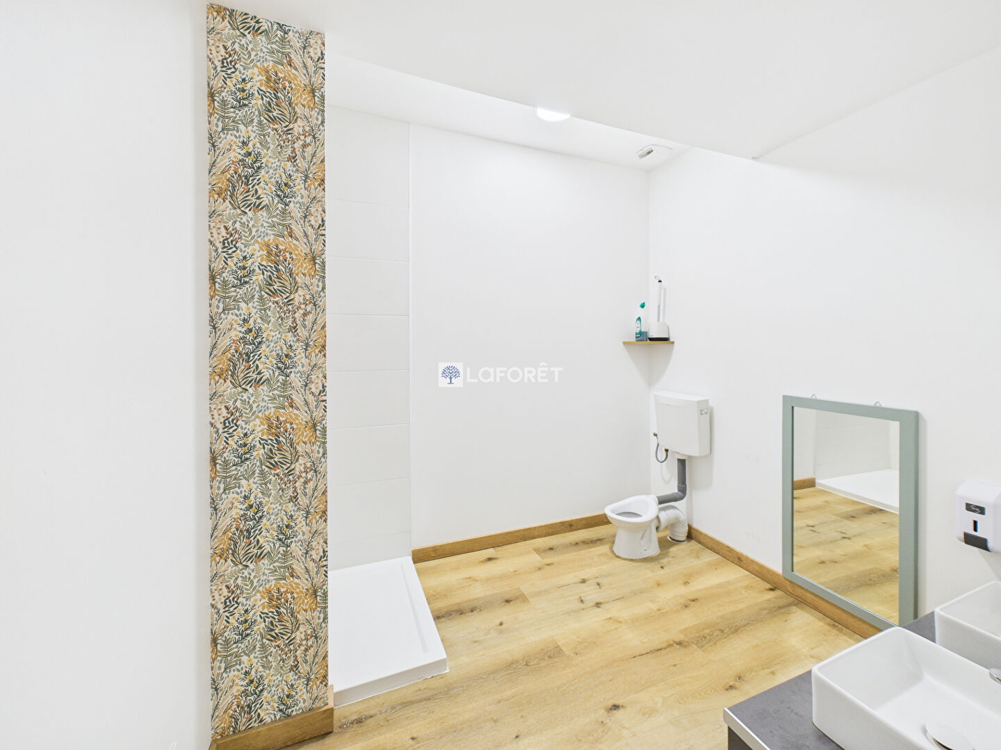 La salle d'eau, aujourd'hui pensée pour un usage professionnel, pourra être reconfigurée afin d'offrir un aménagement plus classique et optimisé pour l'habitation.