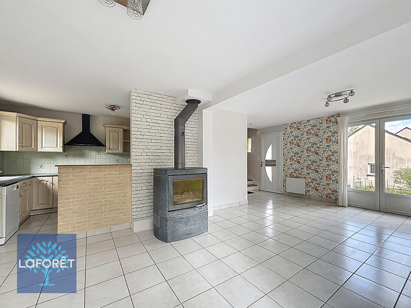 Au rez-de-chaussée, vous trouverez une pièce de vie avec insert bois, donnant sur une cuisine aménagée et équipée, un WC indépendant.