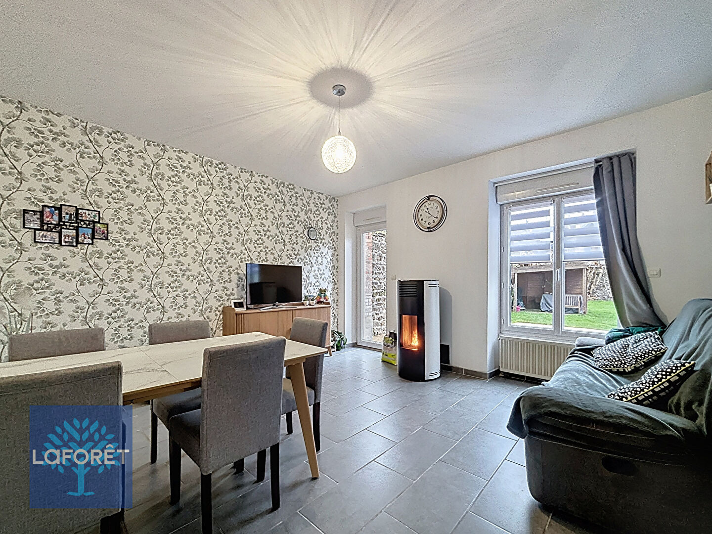 Cette maison en retrait de rue, vous offre au rez de chaussée : Une entrée véranda, une cuisine aménagée et équipée, pièce de vie avec poêle à granulés récent , WC, un espace de stockage.