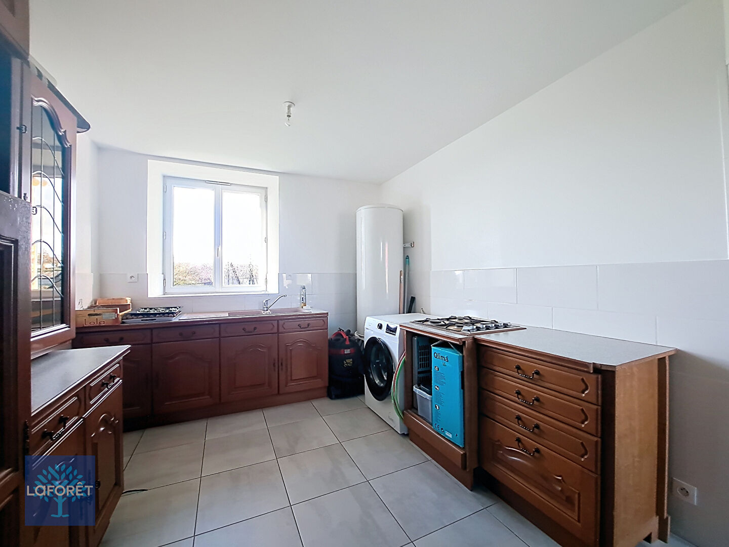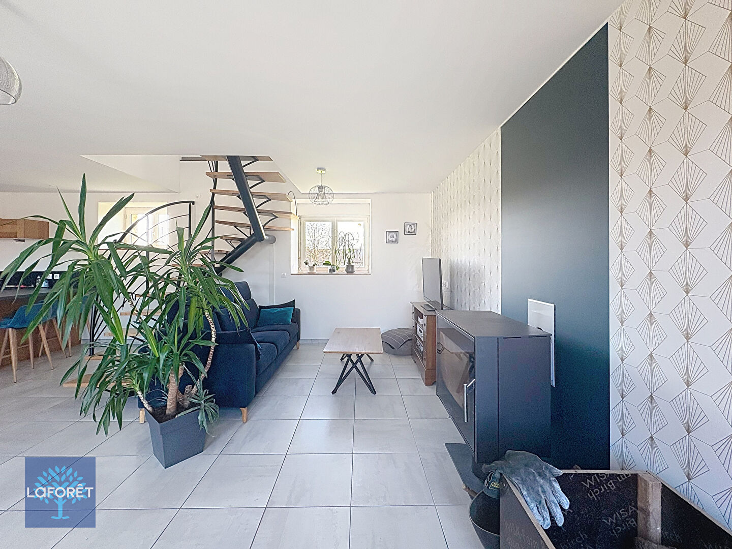 Au rez-de-chaussée, découvrez une spacieuse pièce de vie avec cuisine ouverte aménagée et équipée, un salon chaleureux avec poêle à bois, une arrière-cuisine pratique, ainsi qu'une suite parentale avec salle d'eau et dressing. Un WC complète ce niveau.