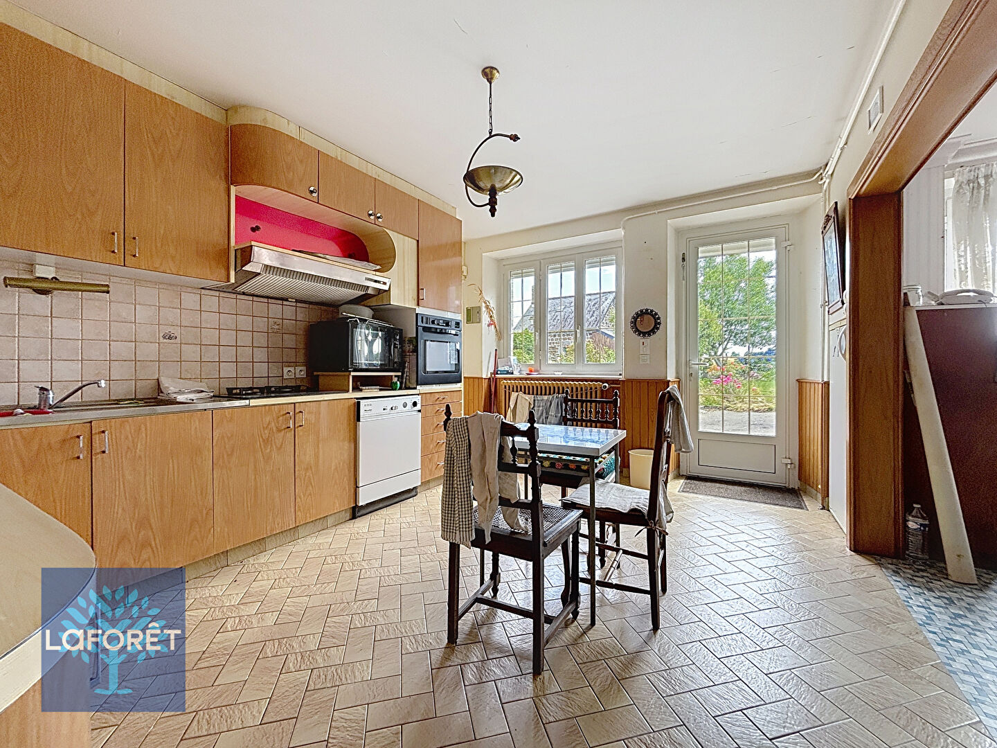 La maison principale propose de beaux volumes avec, au rez-de-chaussée, une cuisine aménagée et équipée, une spacieuse salle à manger de plus de 35 m², un salon cosy, une salle de bain ainsi qu'une arrière-cuisine.