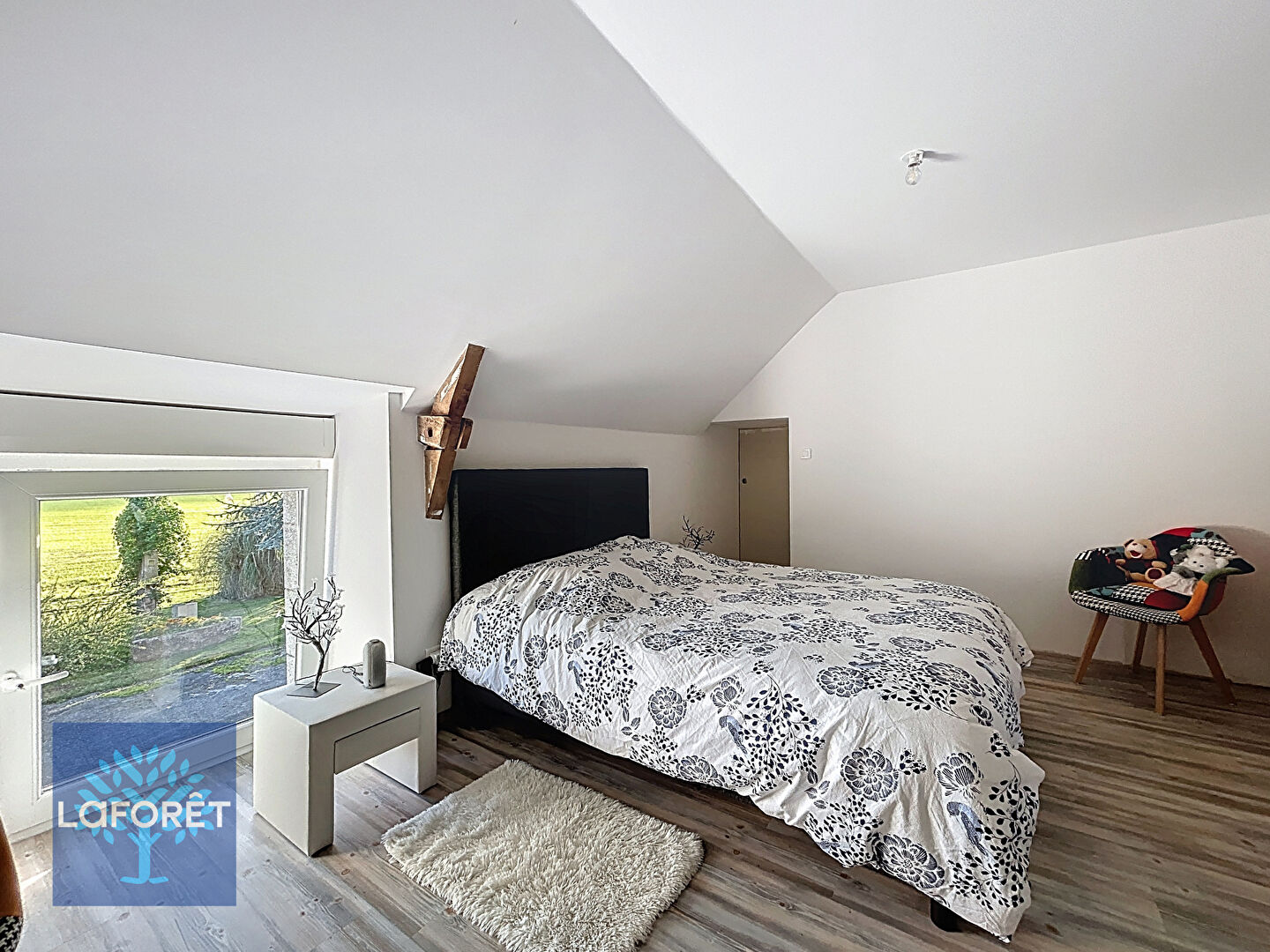 À l'étage, elle se compose d'une grande chambre de 18m², d'un grenier aménageable et d'un WC avec lavabo.