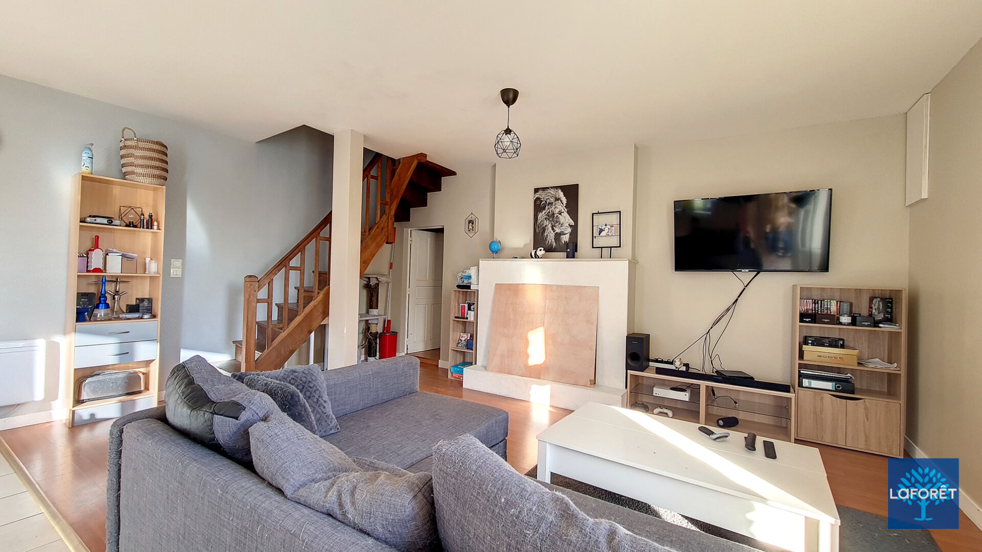 Au rez-de-chaussée, elle se compose d'un grand séjour, d'une cuisine aménagée, d'une arrière-cuisine ainsi que d'un espace bureau.