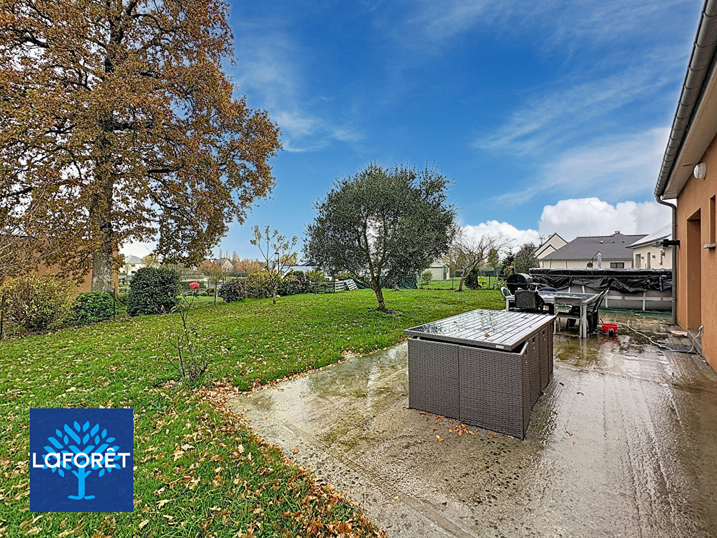Une grande terrasse et un jardin plein sud de plus de 670m2 clos avec piscine hors sol et un garage complètent l'ensemble.