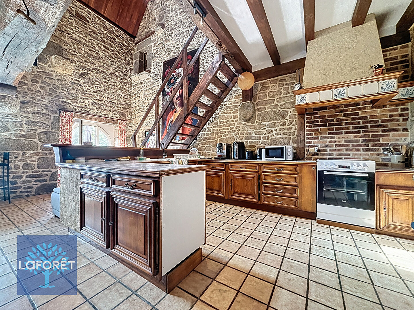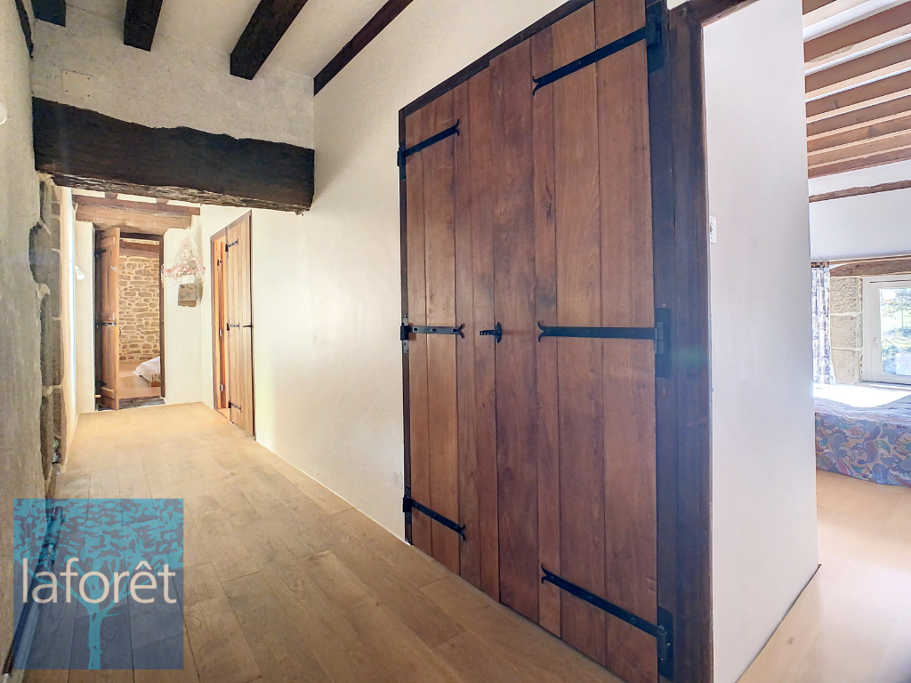 Au rez-de-chaussée, vous découvrirez une pièce de vie avec sa cheminée en granit, dans laquelle a été installé un poêle à bois, et bénéficiant d'une belle hauteur sous plafond, ainsi qu'une arrière-cuisine et des WC. Un appartement indépendant, récemment aménagé, comprend une pièce de vie avec coin nuit, une cuisine aménagée et équipée, ainsi qu'une salle d'eau avec WC. (Idéal pour une location de courte durée, un revenu complémentaire ou un projet familial. Possibilité de réintégrer facilement cet espace à l'espace de vie principal.)