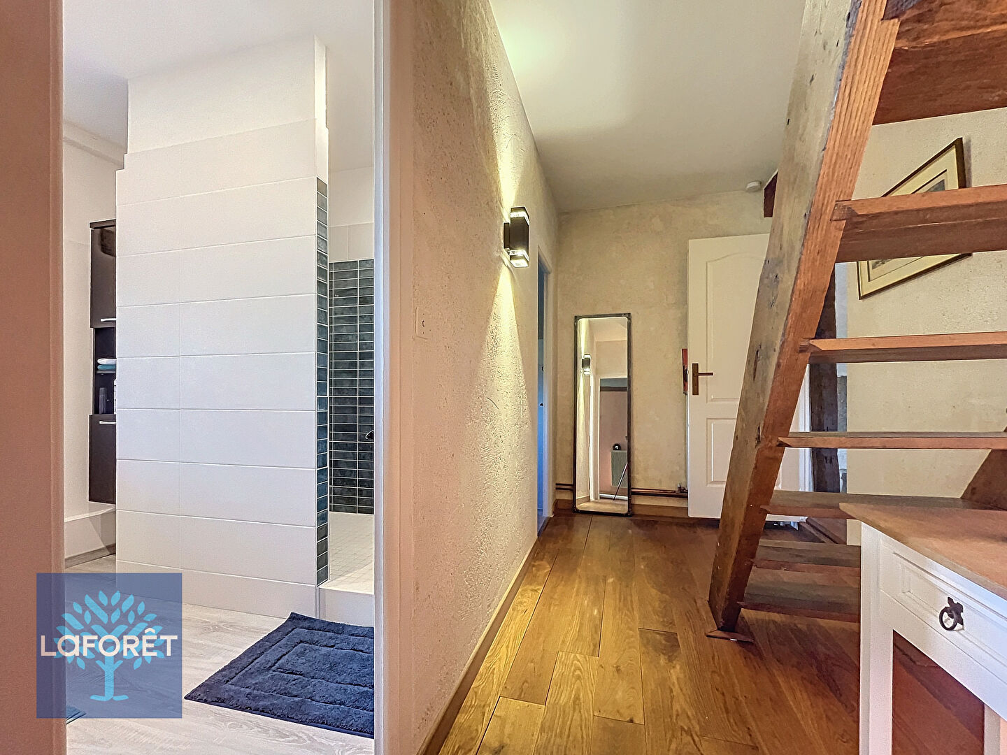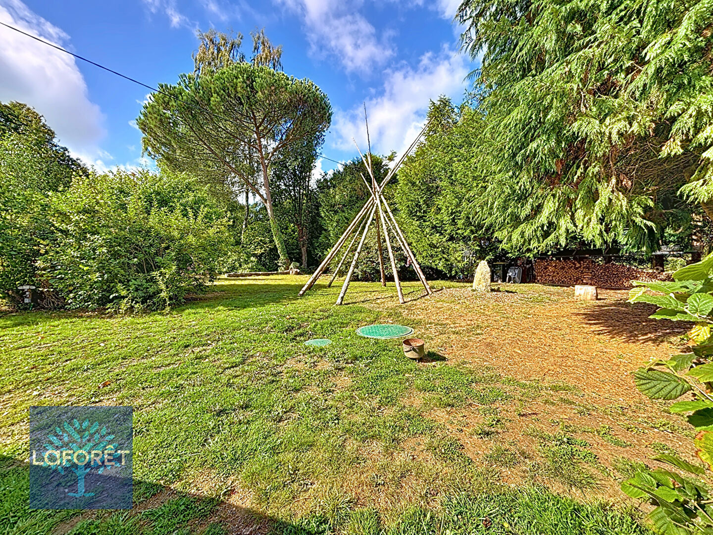 À l'extérieur, un terrain arboré complète cet ensemble.