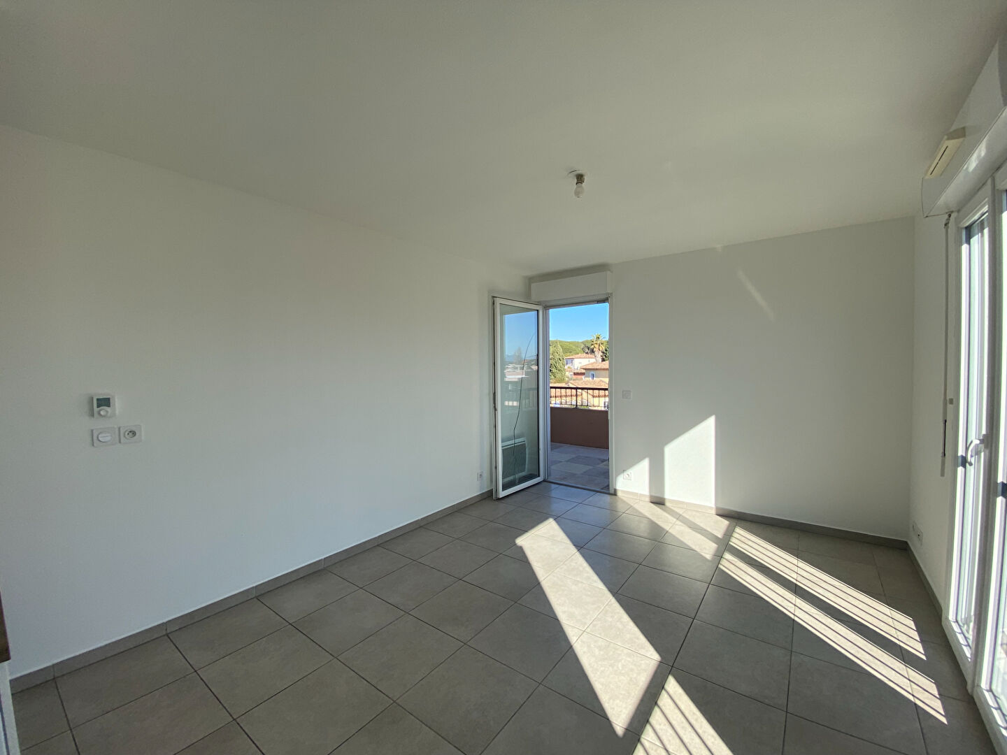 L'appartement se compose d'un séjour avec cuisine ouverte donnant accès à une terrasse par une porte vitrée, d'une grande chambre et d'une salle d'eau avec WC.