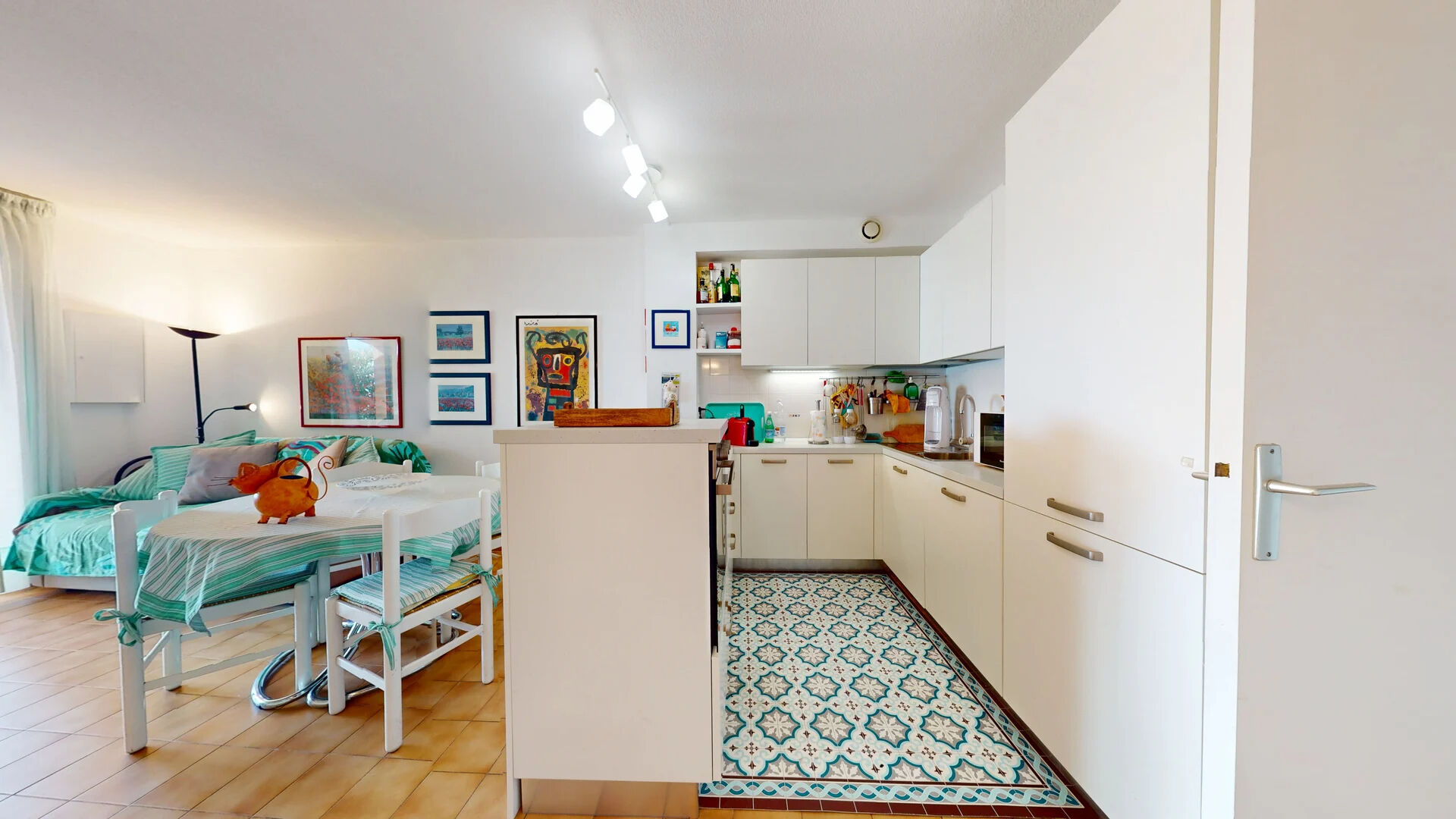 Au rez-de-chaussée, vous trouverez un spacieux et lumineux séjour avec cuisine ouverte, idéal pour des moments conviviaux. Une salle d'eau avec lavabo e wc complète ce niveau. Le séjour s'ouvre sur une agréable terrasse couverte donnant sur un jardin privé d'environ 35 m², tous deux avec une vue mer frontale : l'endroit parfait pour des repas en plein air face à la Méditerranée.