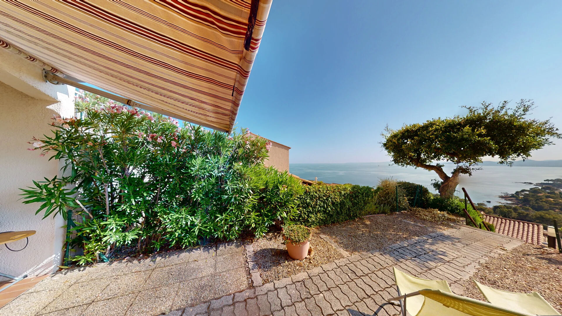 Située dans la partie la plus haute et la plus prisée de la résidence renommée Boulouris Panorama, cette charmante maison mitoyenne bénéficie d'une vue panoramique à 180 degrés sur la mer et le massif de l'Estérel. Faisant partie des rares maisons de la dernière rangée, elle offre l'une des vues les plus spectaculaires de toute la résidence.