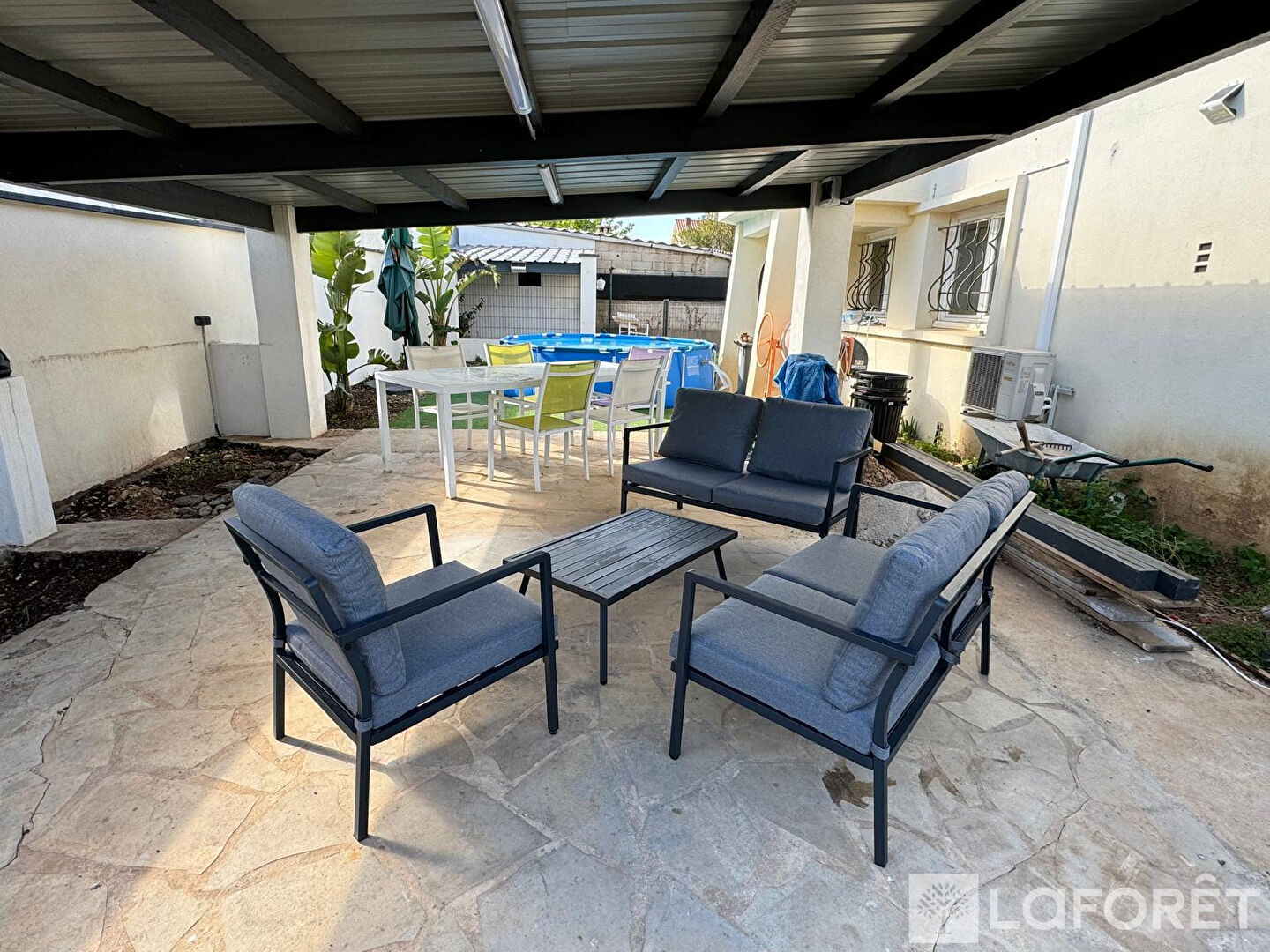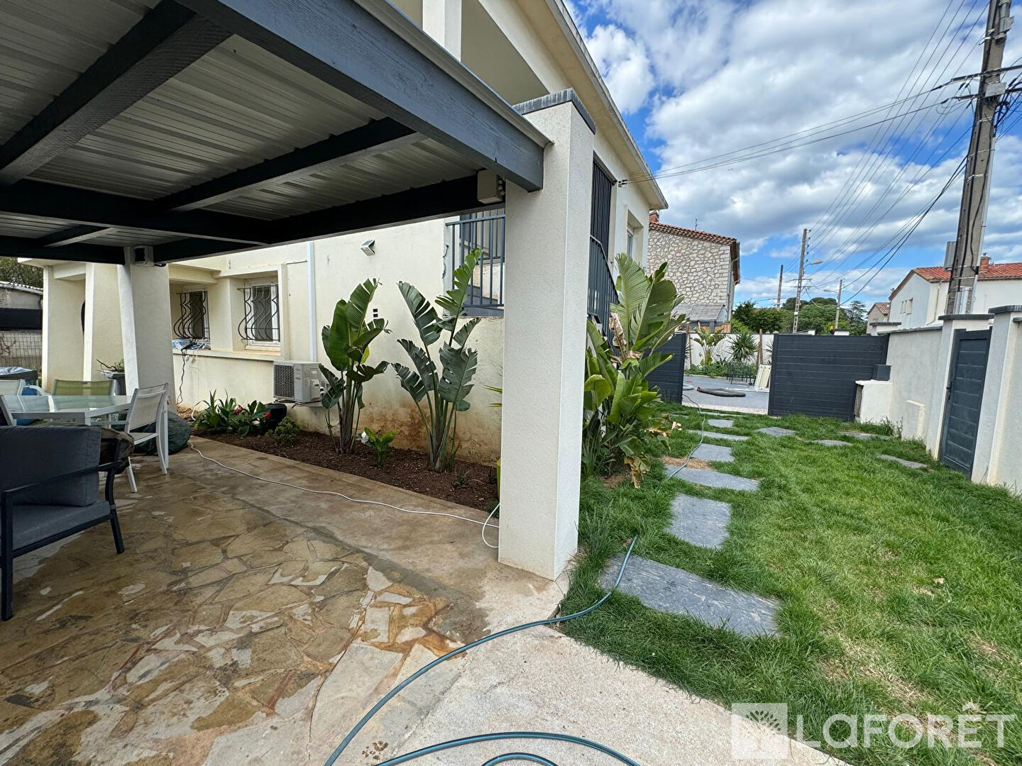 Le jardin est aménagé et arboré, il dispose d'une pergola équipée de 14 panneaux photovoltaïques en autoconsommation avec batteries, ainsi que d'un abri de jardin.