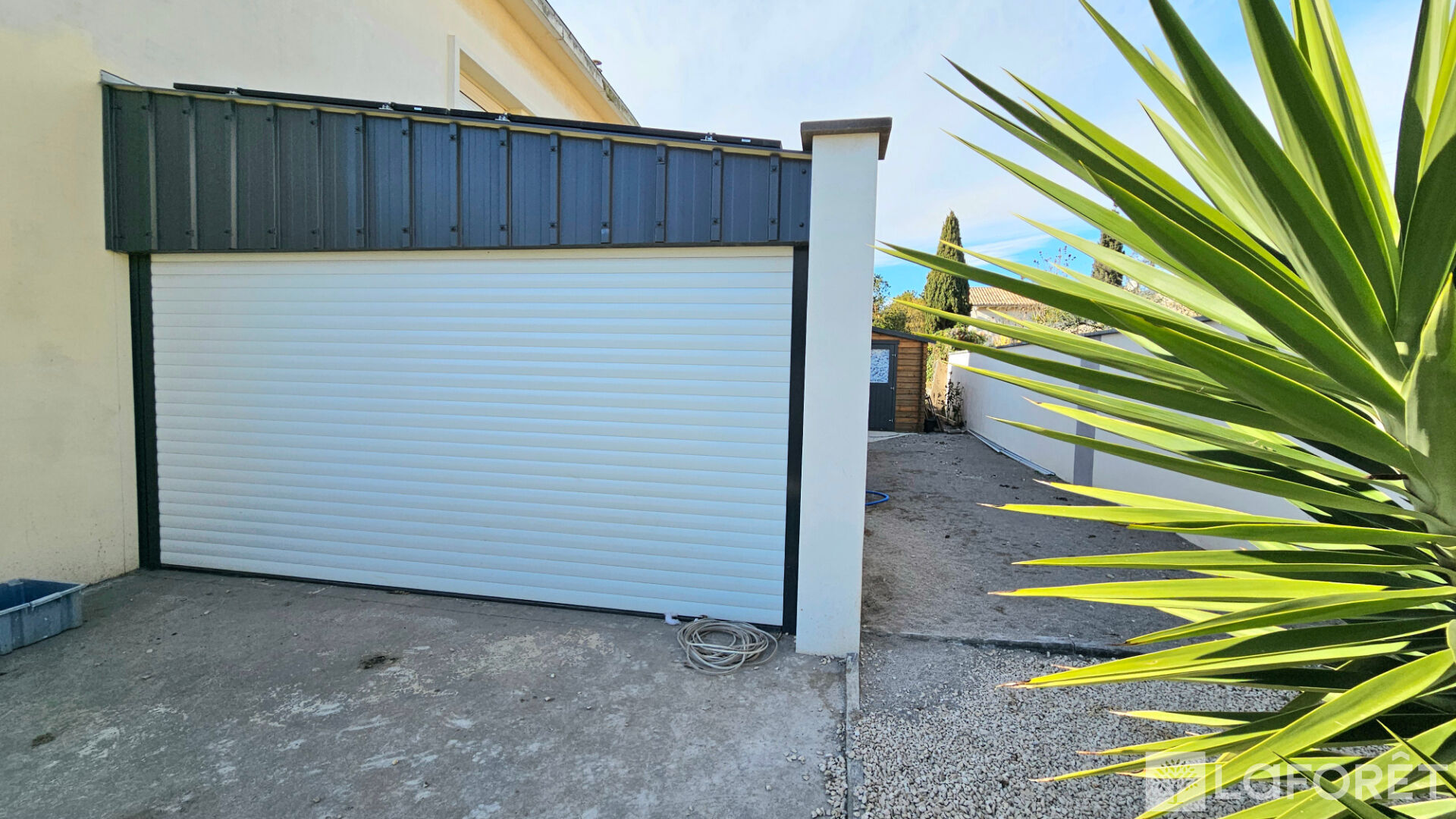 L'accès pour les véhicules se fait par 2 portails en aluminium motorisés, un portillon pour l'accès piétons.