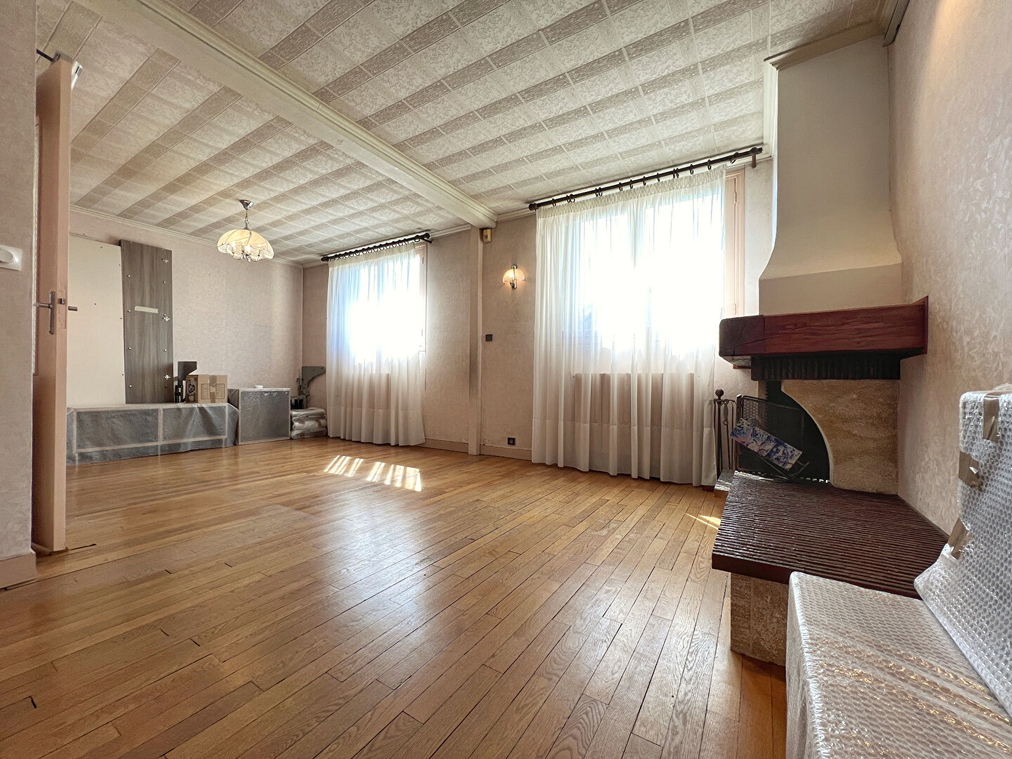 Le rez-de-chaussée vous accueille avec un double séjour traversant baigné de lumière, offrant près de 40m² d'espace de vie. Vous y trouverez également une cuisine indépendante, une salle de bain fonctionnelle.