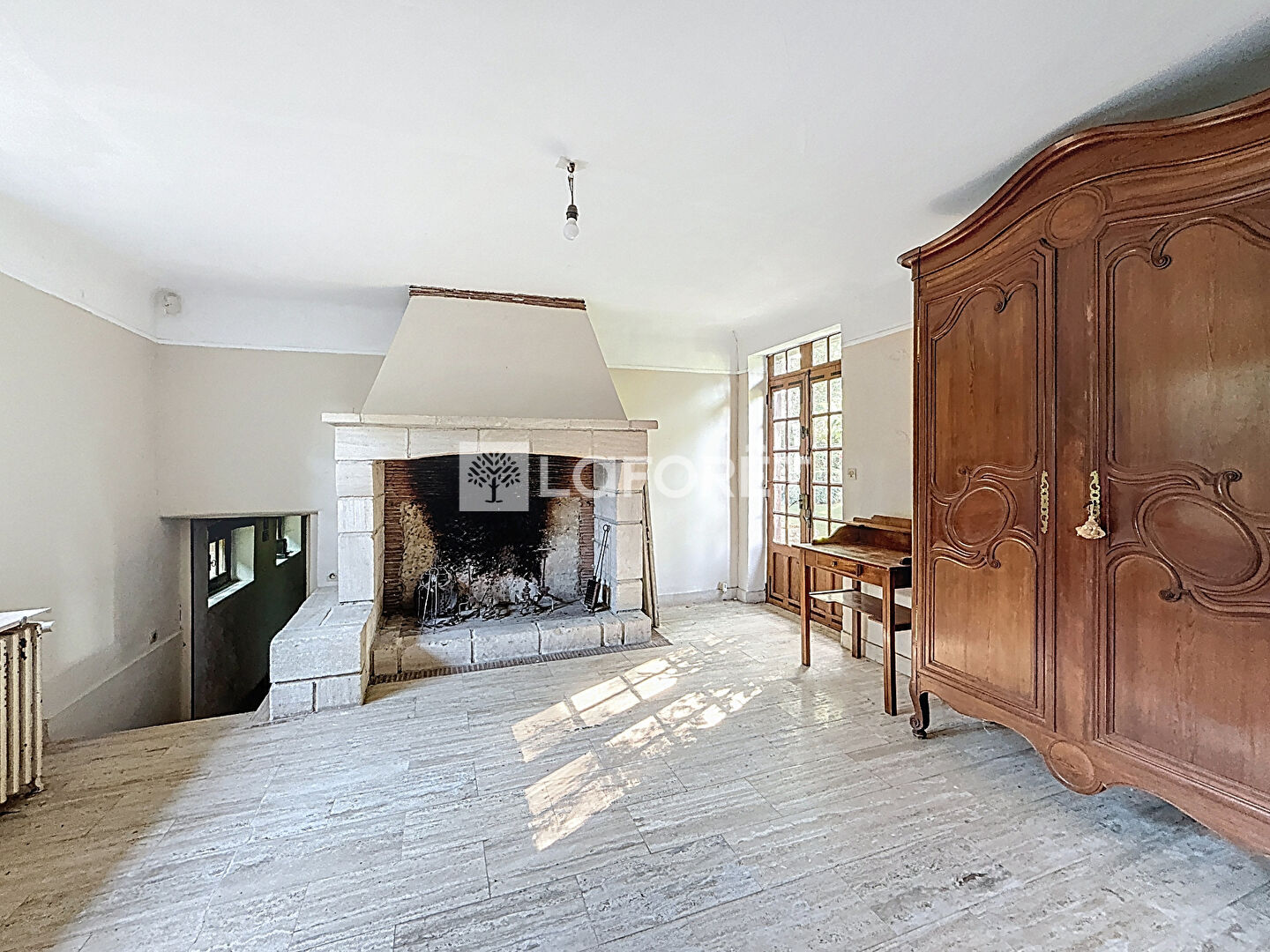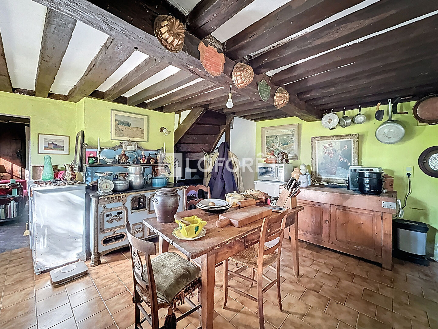 Cette maison dispose au rez-de-chaussée d'un salon avec cheminée, cuisine, séjour d'environ 40m² avec cheminée ouverte, salle de douche avec W.C.