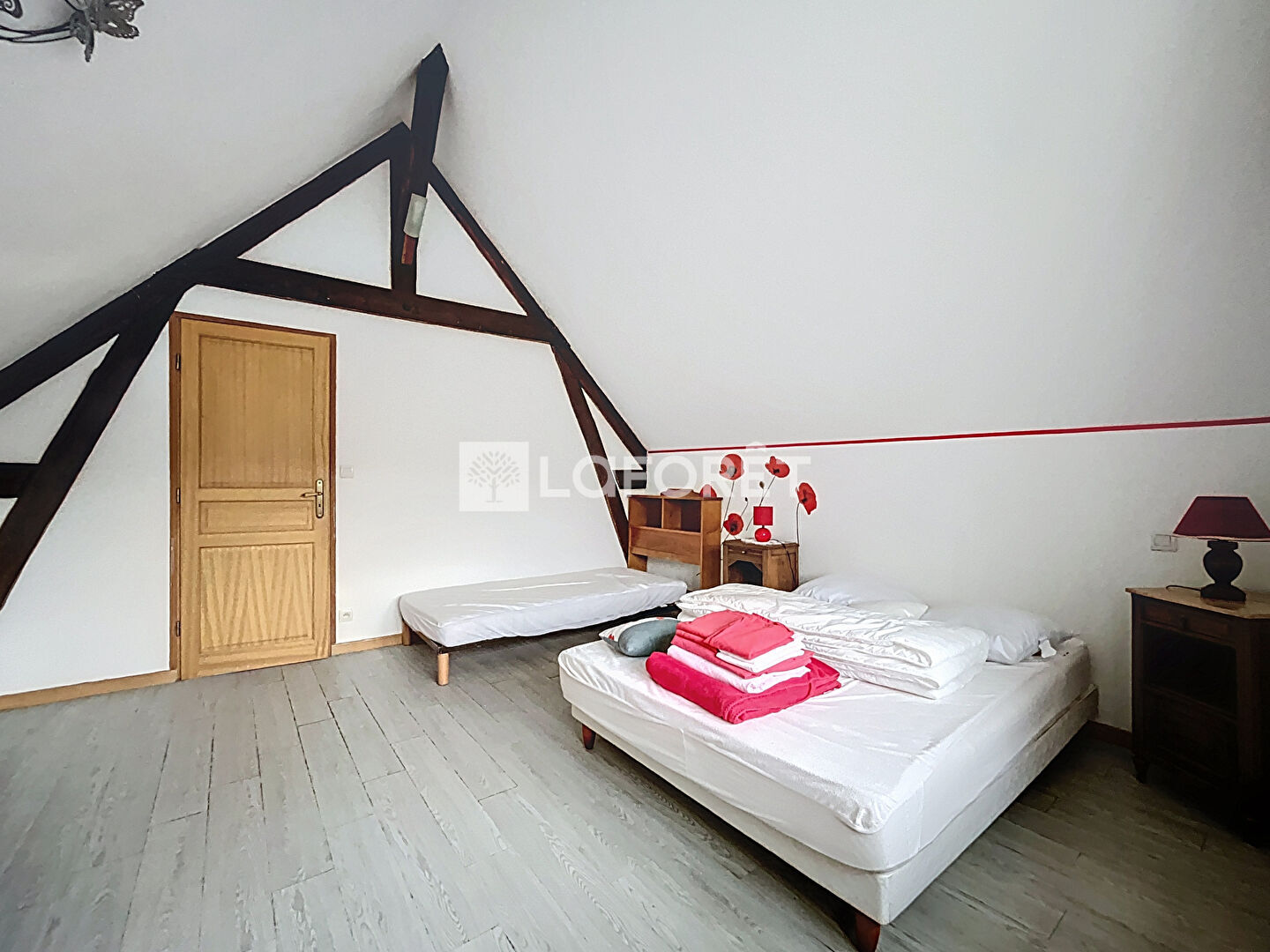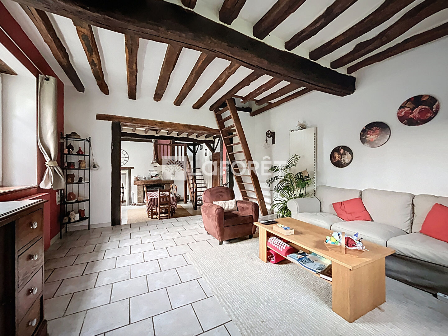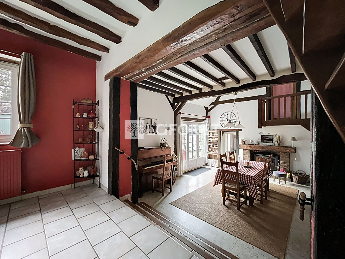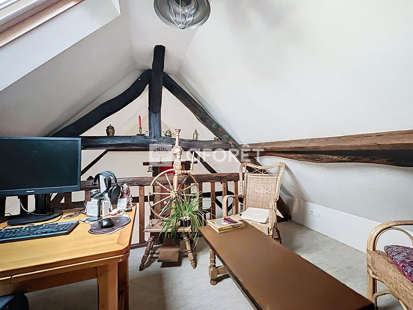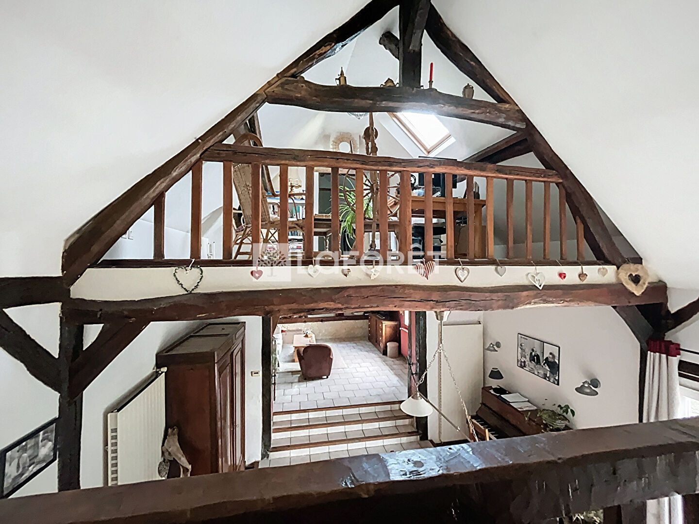 A l'étage ; une mezzanine offrant un espace bureau, 3 chambres, une salle de bains et un WC séparé.