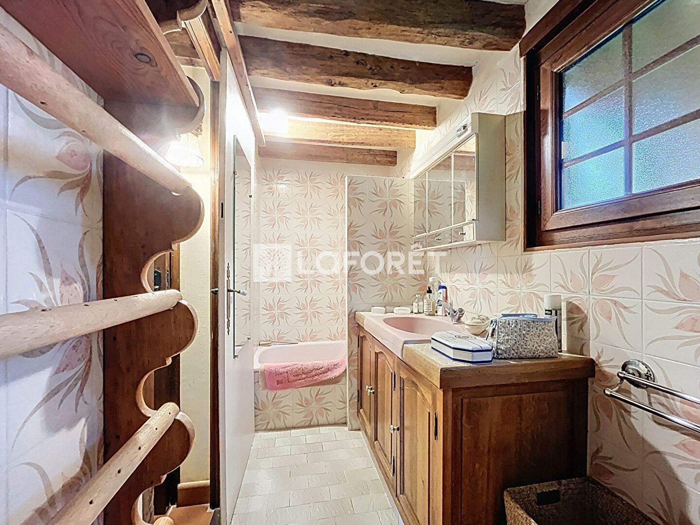 Elle comprend au rez-de-chaussée : une cuisine indépendante aménagée, une pièce de vie de plus de 32 m² avec cheminée, une salle de bains et un WC séparé.