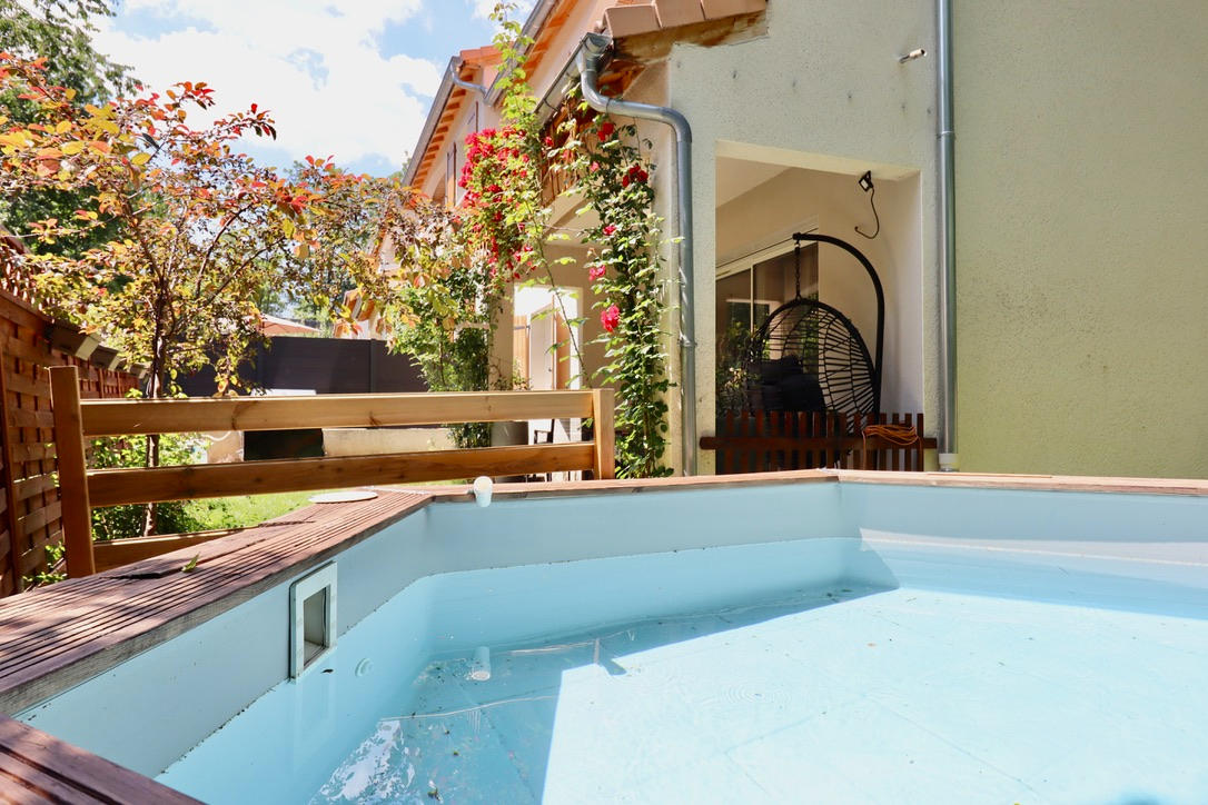Le jardin privatif avec piscine, l'absence de travaux et sa haute performance énergétique via la pompe à chaleur et les panneaux photovoltaïques sont ses principaux points forts.