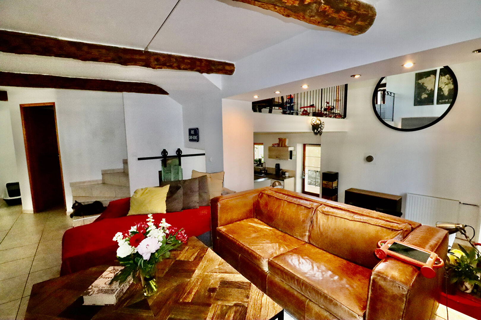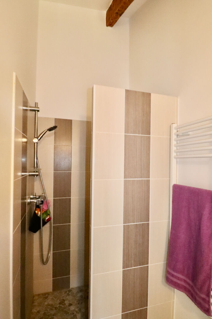 Elle se compose de 3 niveaux: au premier, la cuisine équipée et aménagée avec la salle à manger. Au deuxième niveau, une chambre avec salle de bains, un coin séjour, un cellier et l'accès au jardin. Au troisième et dernier niveau, vous trouverez 3 autres chambres avec deux salle de bains supplémentaires et une pièce palière.