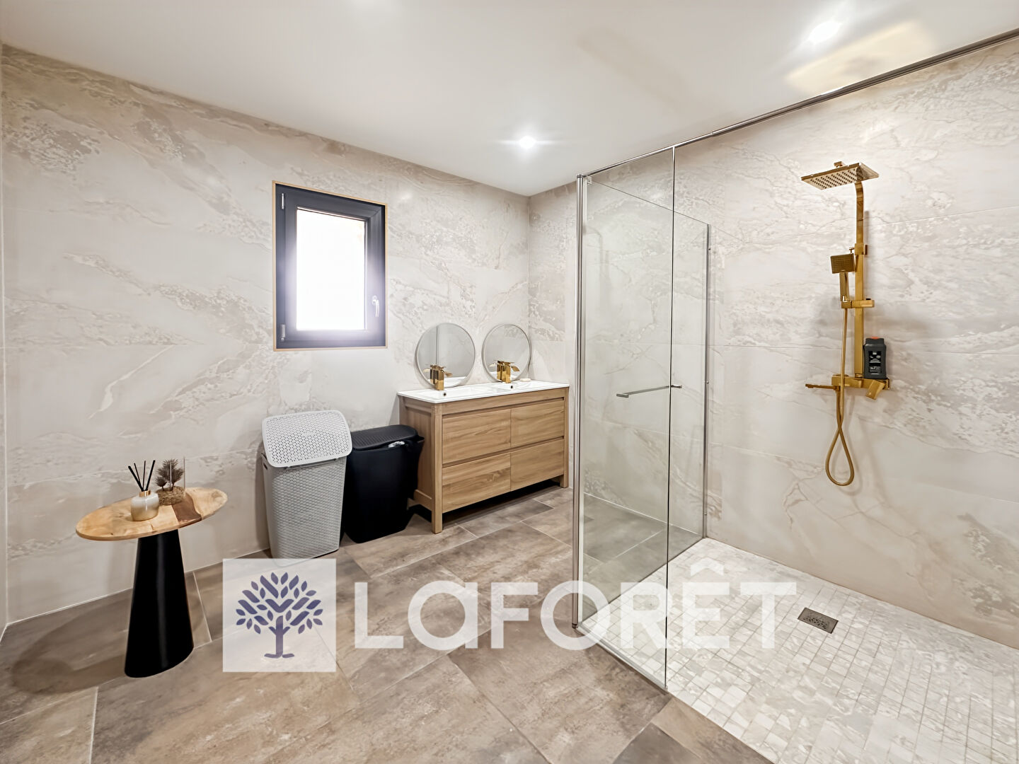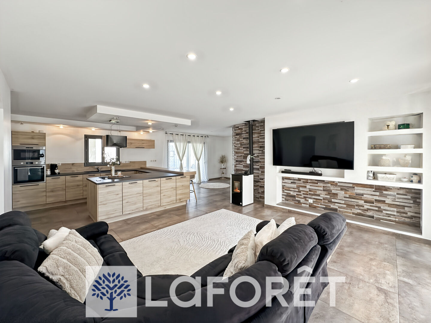 En vente, cette maison récente de 2019 se compose d'une cuisine aménagée équipée ouverte sur séjour avec poêle à granulés, d'un cellier, de 3 chambres dont une suite parentale avec salle d'eau privative et wc, d'une seconde salle de bains et douche, et wc indépendant.