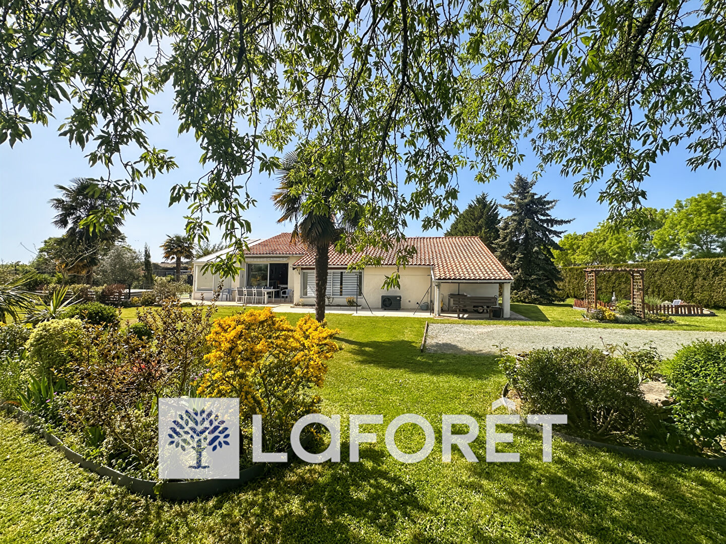 Cette maison de plain-pied offre un cadre de vie agréable. Elle développe 151 m² habitables et bénéficie d'une extension récente, apportant de beaux volumes et une circulation fluide entre les pièces.