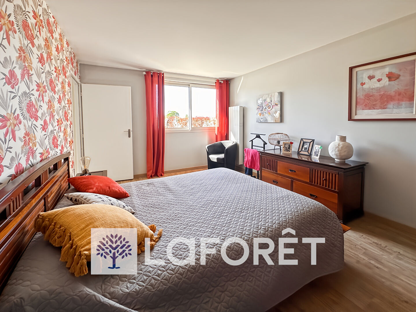 La partie nuit comprend trois chambres, dont deux avec rangements intégrés, ainsi qu'un bureau.