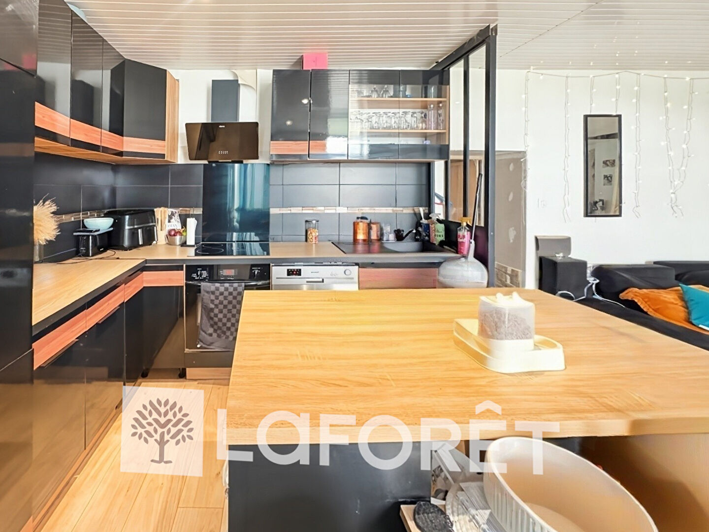 Au rez-de-chaussée, vous trouverez une cuisine aménagée et équipée ouverte sur un séjour ainsi que d'une chambre disposant de sa salle de bains et d'un WC indépendant.