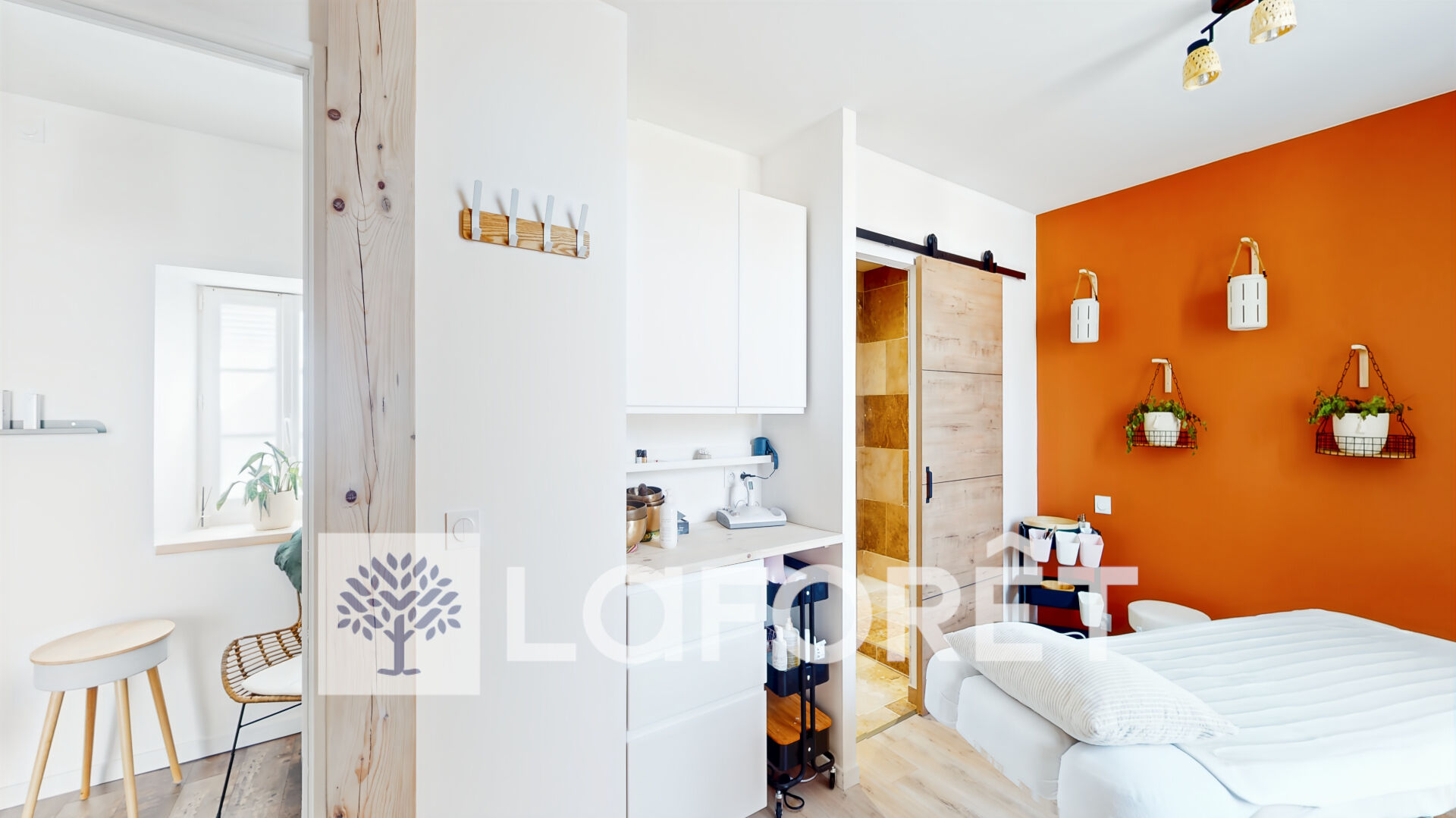 Local professionnel de 35 m² avec espace SPA et sauna traditionnel, douche et WC et salle de massage.