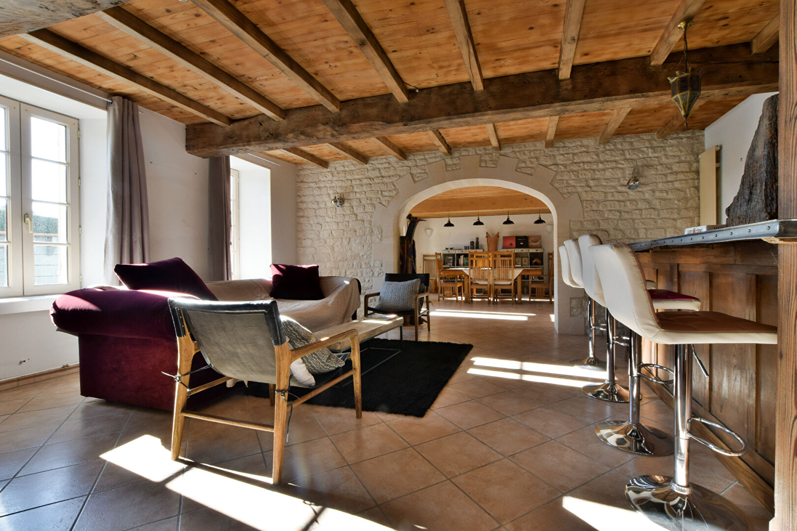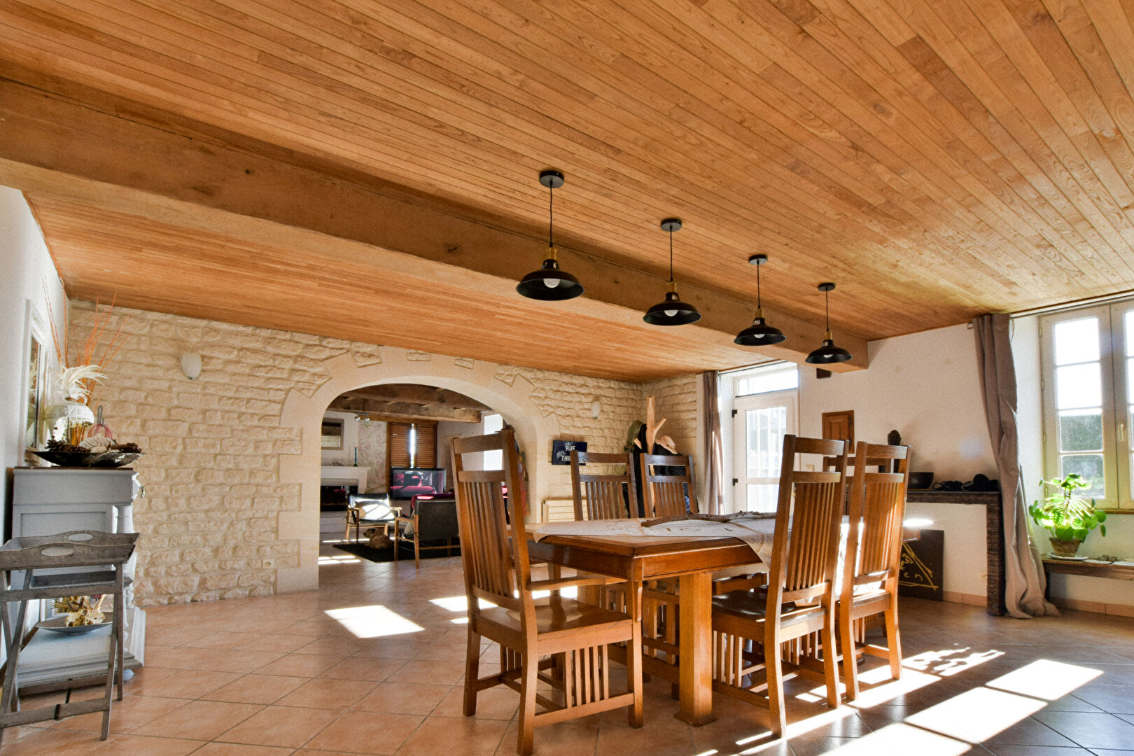 (AF)À vendre : découvrez cette maison T7 de 199 m², dans le village de SAINT GENIS DE SAINTONGE (17240). Au rez-de-chaussée vous trouverez une vaste salle à manger de 30 m², un salon de 31 m², une cuisine aménagée et équipée de 26 m², un bureau, deux suites parentales (de 12 et 14 m²), avec salle de bains et salle d'eau, une buanderie, un dressing. Au premier étage, on trouve trois chambres dont une suite parentale avec salle de bains (entre 16 et 18 m²), et une salle d'eau. La maison possède un chauffage fonctionnant au gaz.