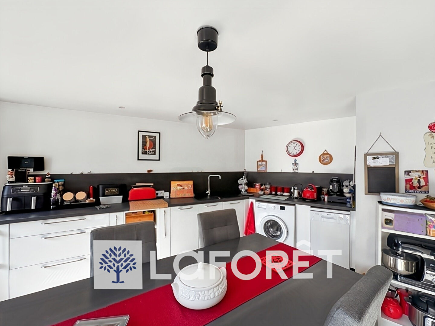 Au rez-de-chaussée, nous trouvons une grande cuisine indépendante de 20 m², un séjour lumineux de 21 m² et un WC. À l'étage, nous disposions d'un palier spacieux desservant une chambre de 12 m² et une salle d'eau avec WC.