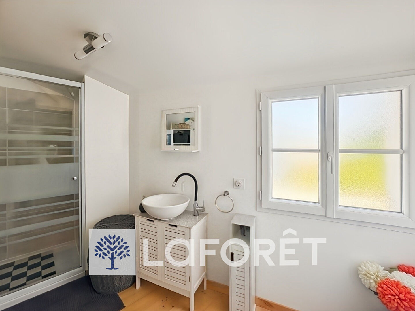 La maison dispose d'un espace extérieur clôturé de 155m² avec une large terrasse en bois, idéal pour profiter des beaux jours.