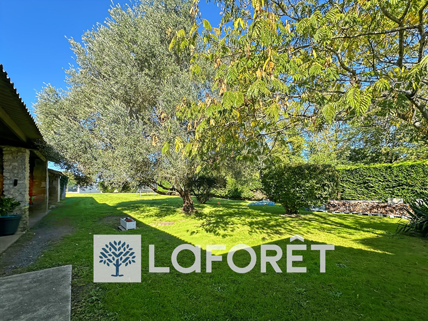 À l'extérieur, le terrain clos et arboré de 1674 m² accueille une dépendance de 100 m² et un garage de 30 m². Les menuiseries en PVC avec double vitrage et les volets roulants électriques ajoutent à la qualité des prestations.