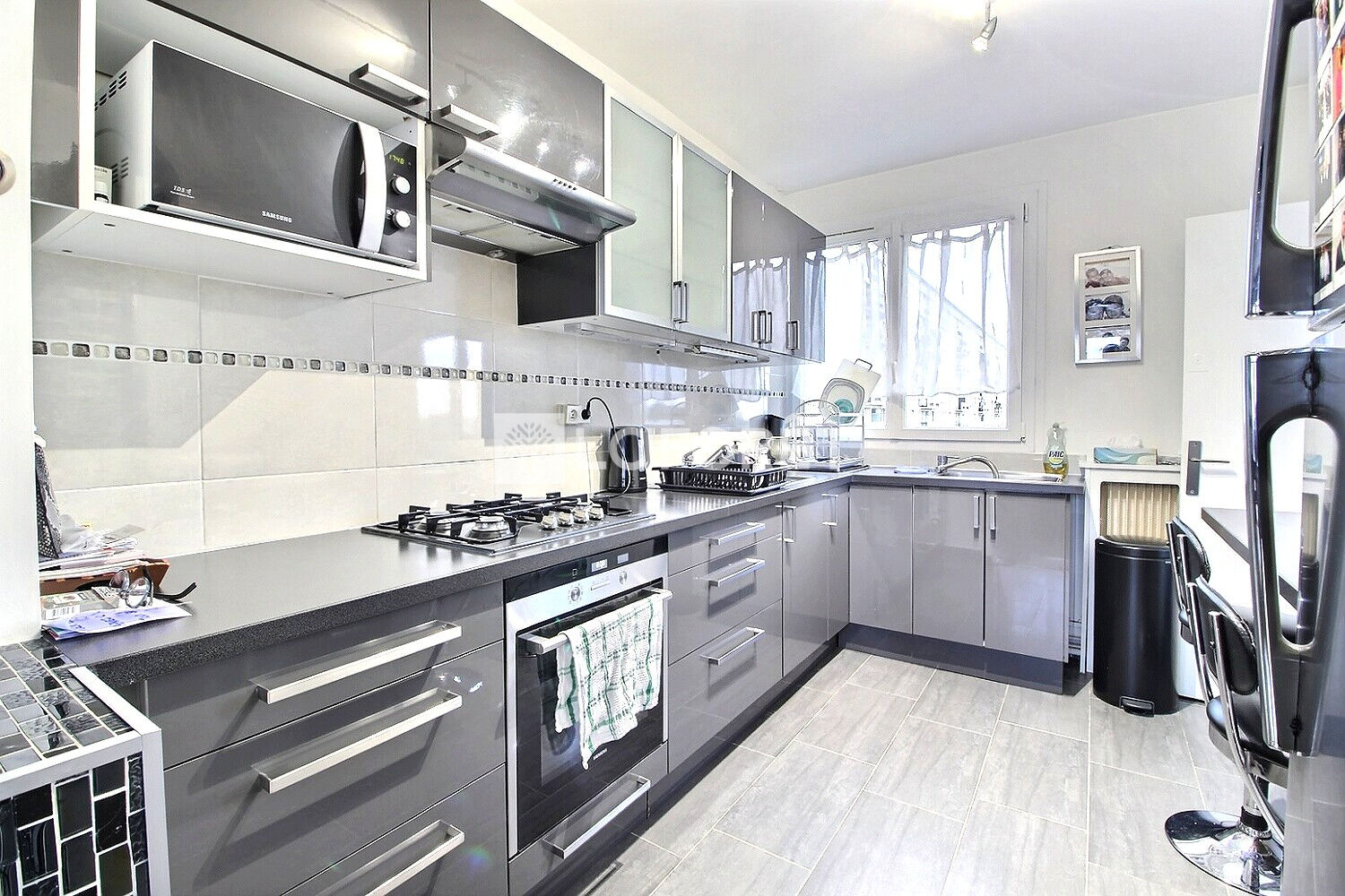 une entrée desservant un séjour double avec balcon, une cuisine indépendante entièrement équipée, un dégagement avec placards, quatre chambres, un balcon, une salle d'eau et un WC indépendant.