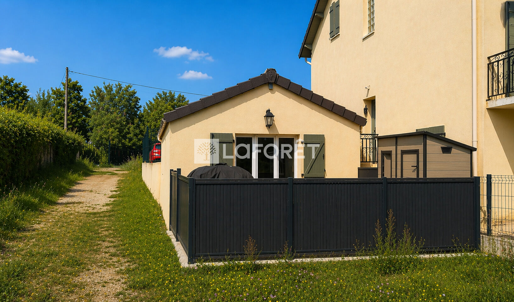 La maison est raccordée à la fibre optique et équipée d'un interphone.