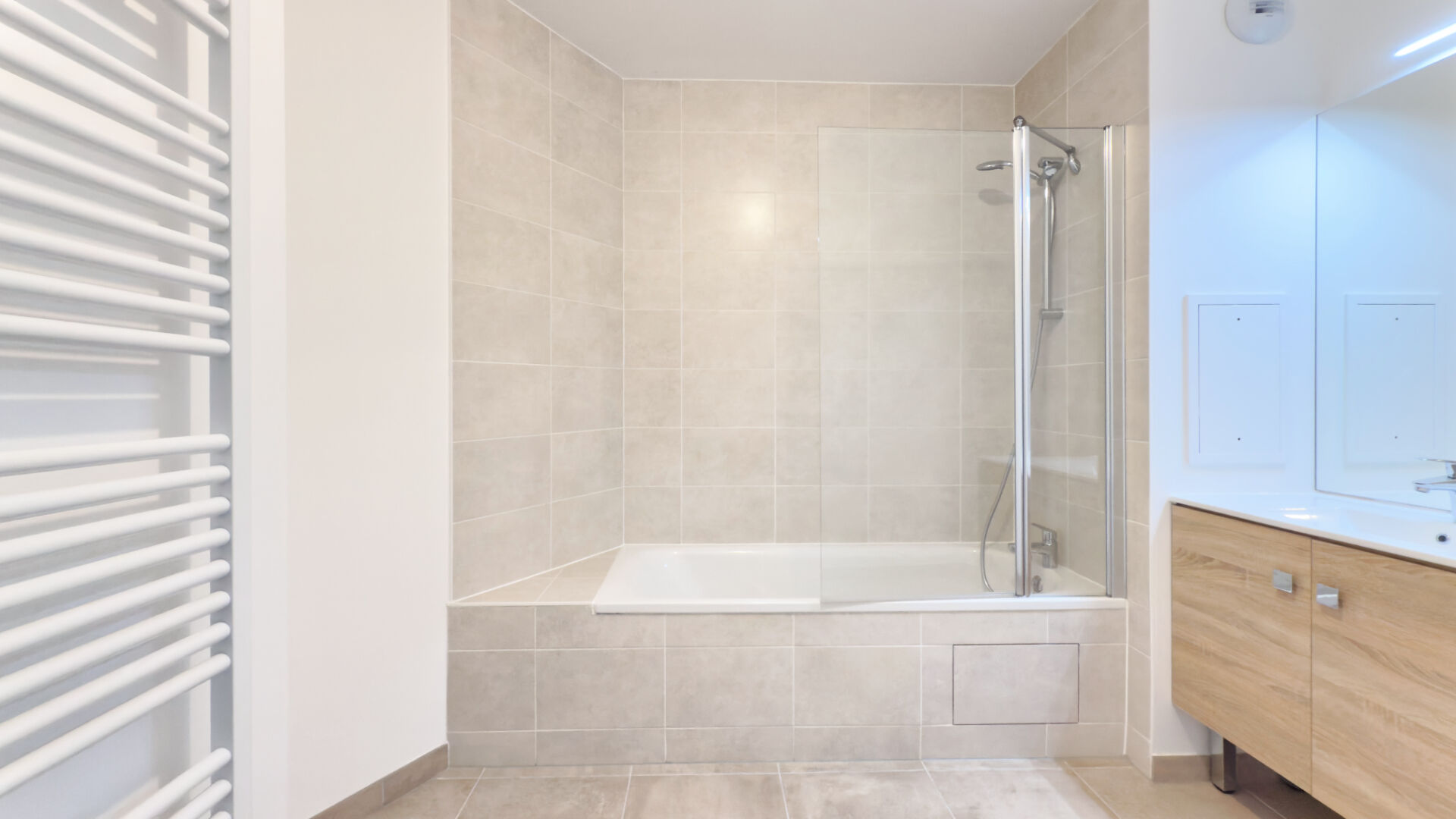 Dans un immeuble neuf et sécurisé, appartement T5 de 98 m² non meublé et rez-de-jardin comprenant un séjour avec cuisine avec accès terrasse et jardin 53 m², quatre chambres, une salle d'eau, une salle de bains, et des WC séparés ; prestations de qualité, double vitrage et volets électriques, au coeur d'un secteur pratique proche des commerces, des écoles et des transports, avec liaison rapide vers Paris.