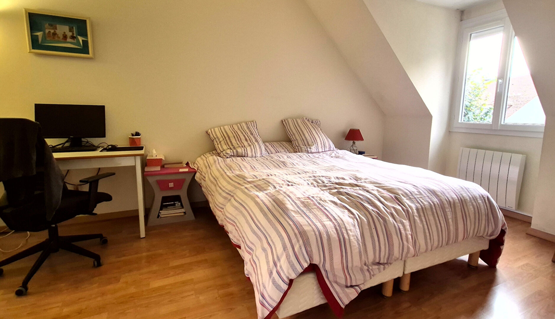 Au premier étage, 2 grandes chambres, et une salle de bains.