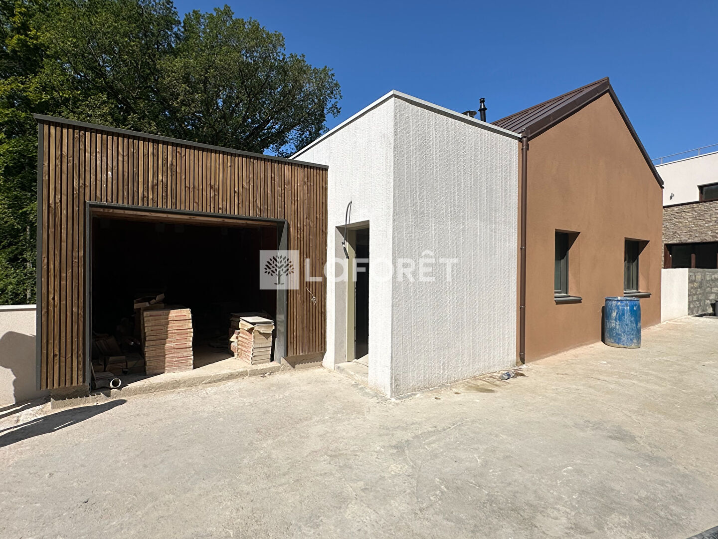 La maison dispose d'un garage fermé, de deux places de stationnement privatives devant la maison ainsi que d'un atelier de la même surface que le garage au niveau du jardin.