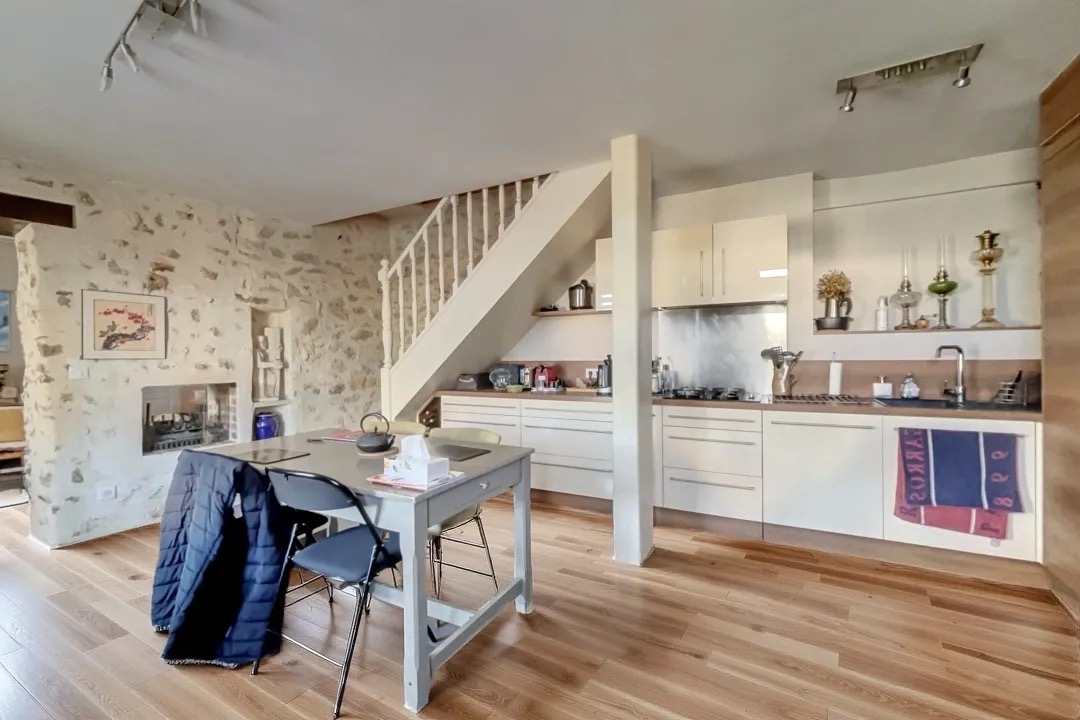 Elle se compose d'une grande pièce de vie salle à manger avec une cuisine ouverte et un cabinet de toilette, ainsi que d'un séjour attenant donnant accès à une chambre avec salle d'eau et cabinet de toilette. Dans l'autre partie de la maison, vous accéderez à un second niveau offrant un palier qui dessert deux chambres, le tout complété par une salle d'eau avec cabinet de toilette sur le palier.
