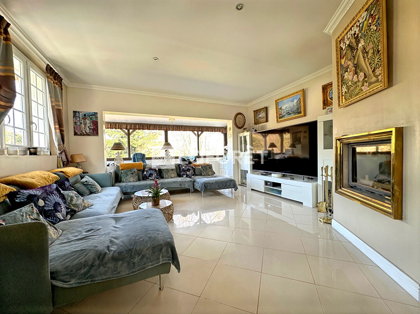 Surface habitable 160m², véranda 56m² et sous-sol total de120m² soit une surface utile de 336m² hors garages et terrasses.