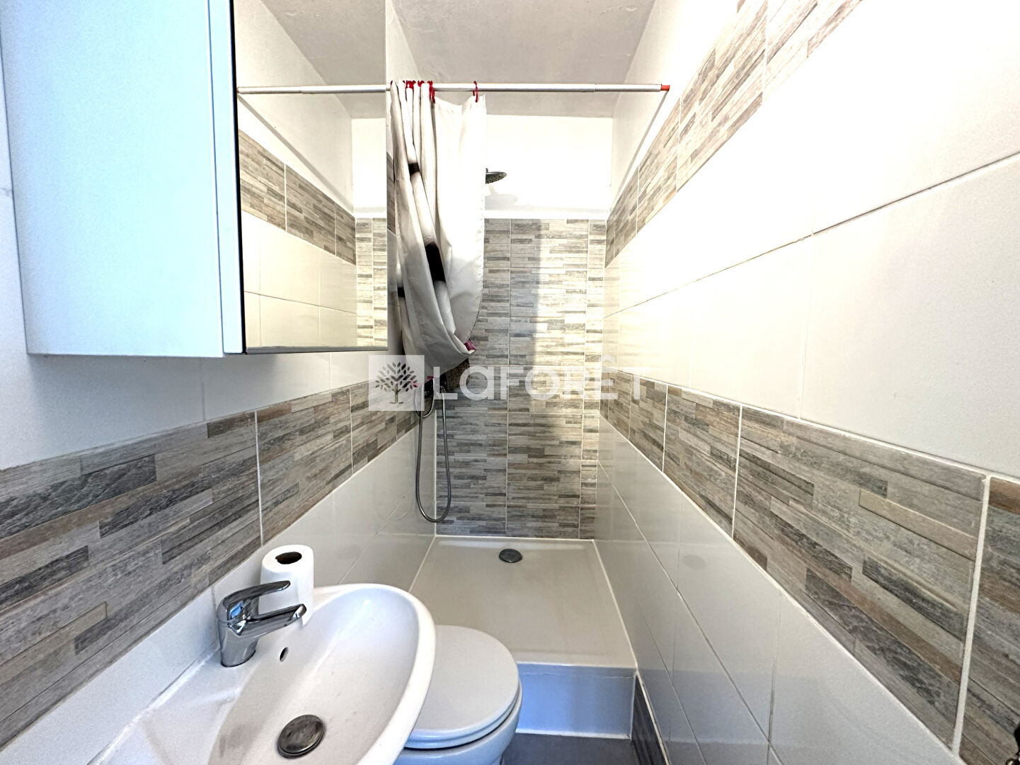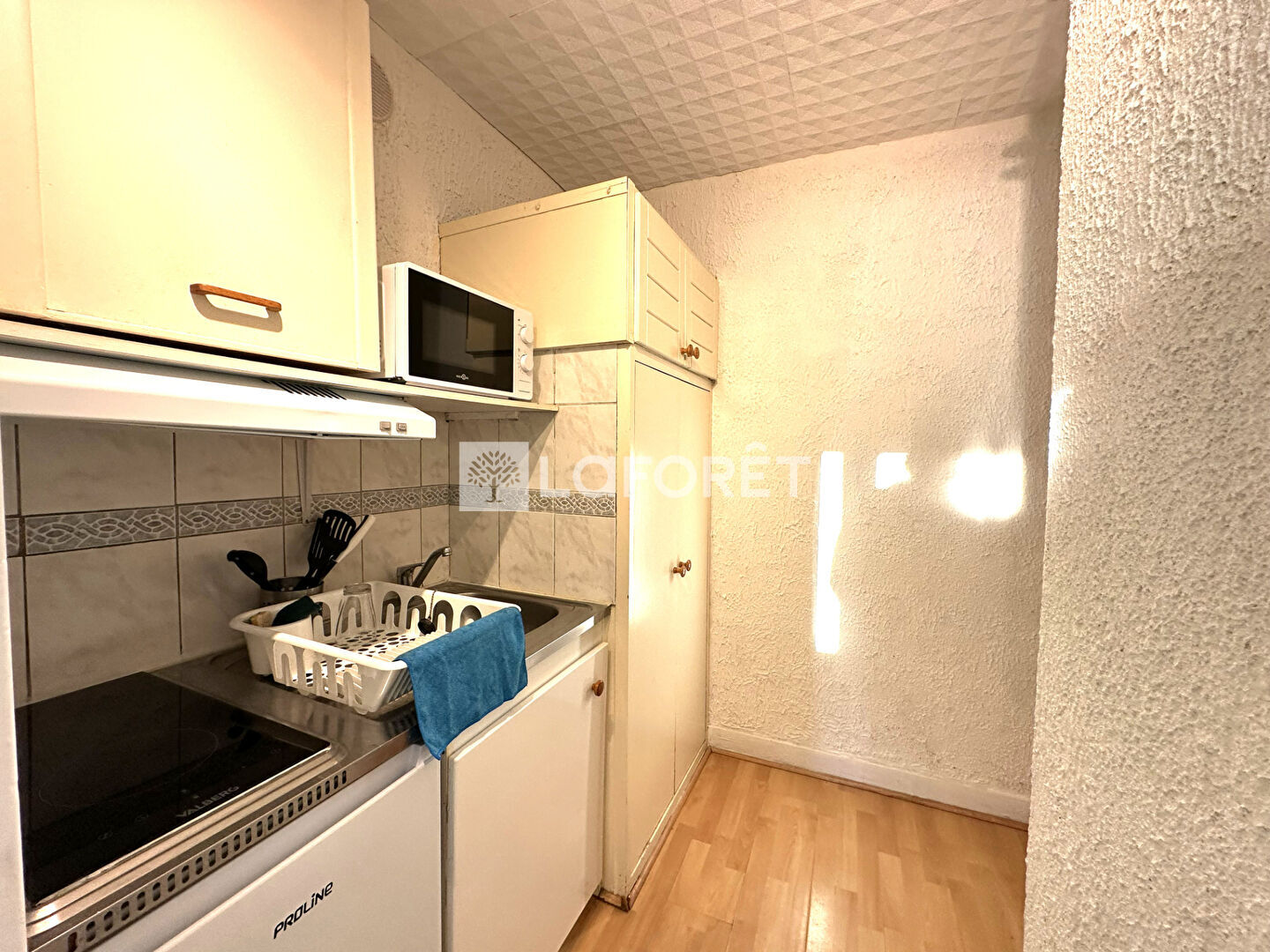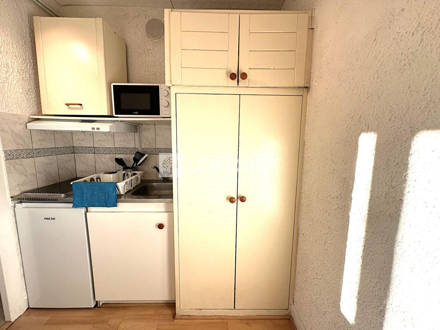 Ce logement est situé au 1er étage d'un immeuble est comprend un coin cuisine, une pièce de vie avec canapé lit et une salle d'eau avec WC.