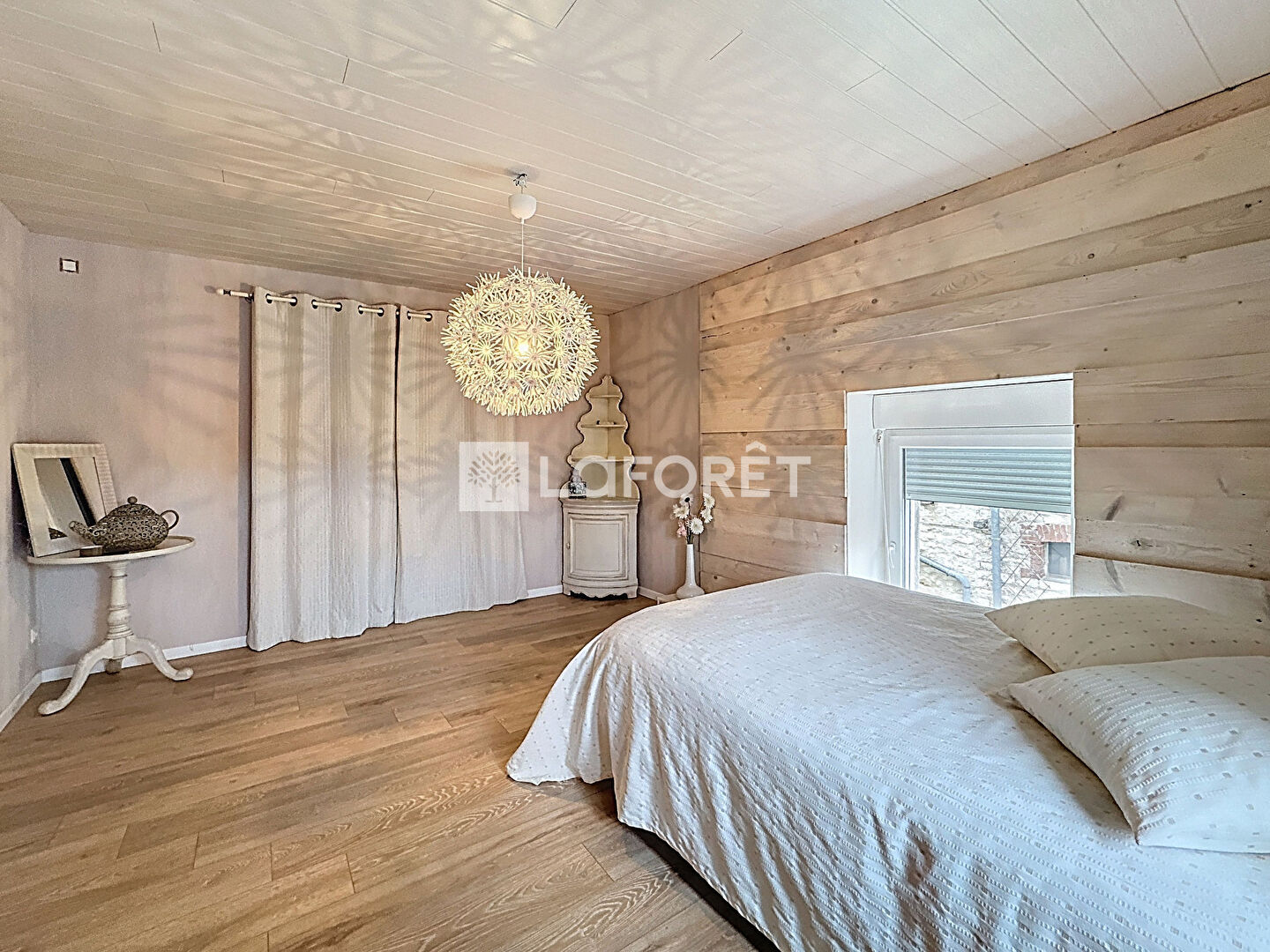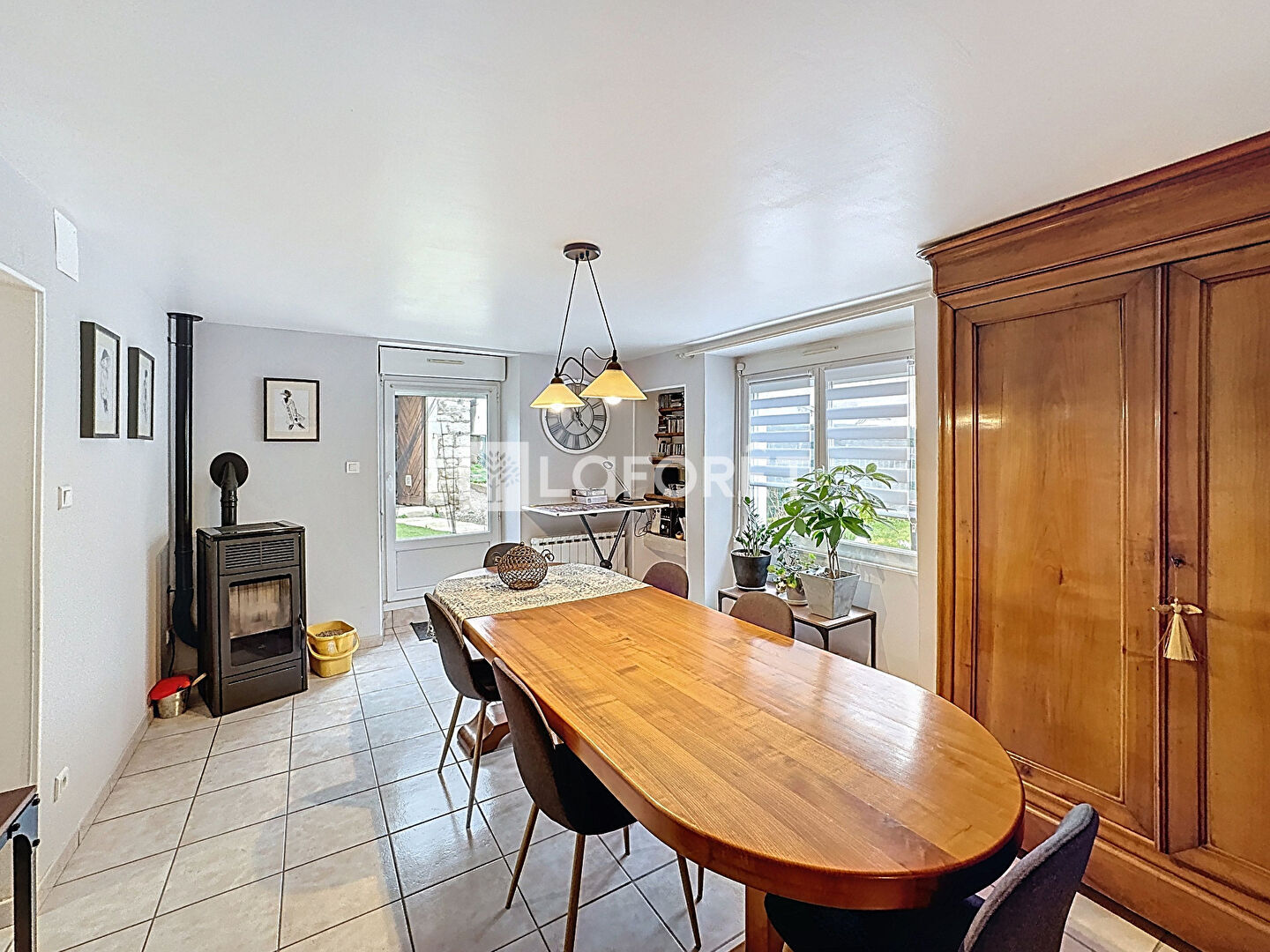 Elle se compose au rez-de-chaussée d'une cuisine, séjour, salle à manger avec poêle à granulés, salon, salle d'eau, WC. A l'étage se trouvent 2 grandes chambres dont une avec dressing. Grenier aménageable.