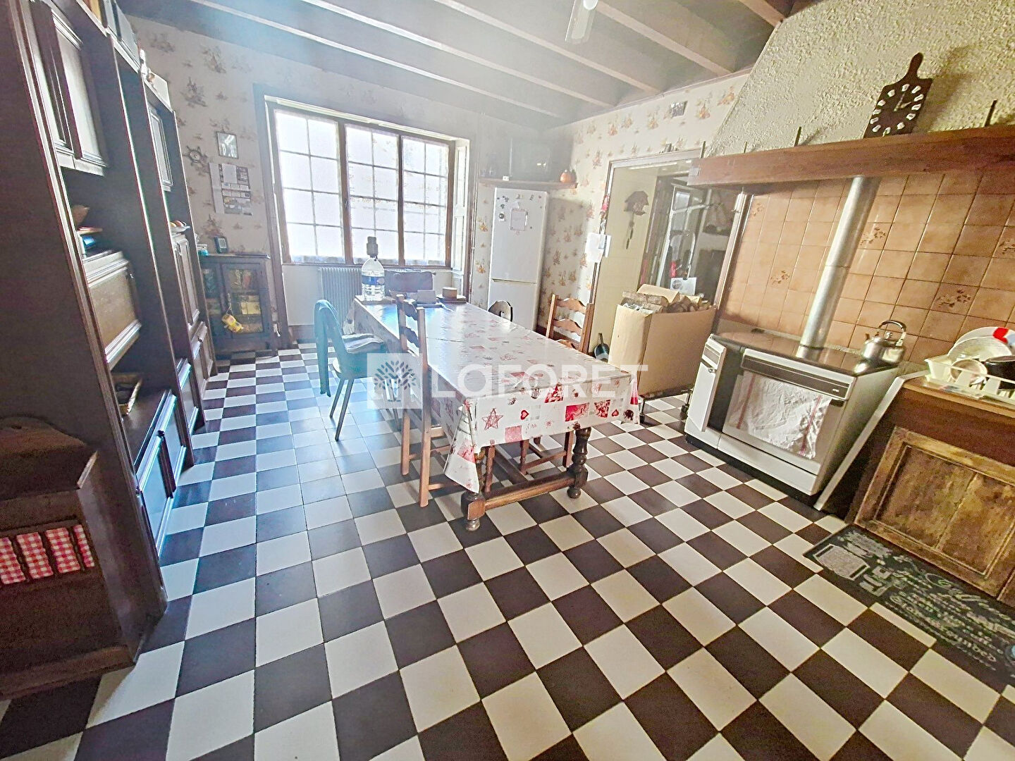 Elle se compose d'une entrée, cuisine aménagée, salon/séjour de 40m², une chambre, une pièce, salle d'eau/WC. A l'étage : 2 chambres, greniers aménageables. Chauffage central fioul.