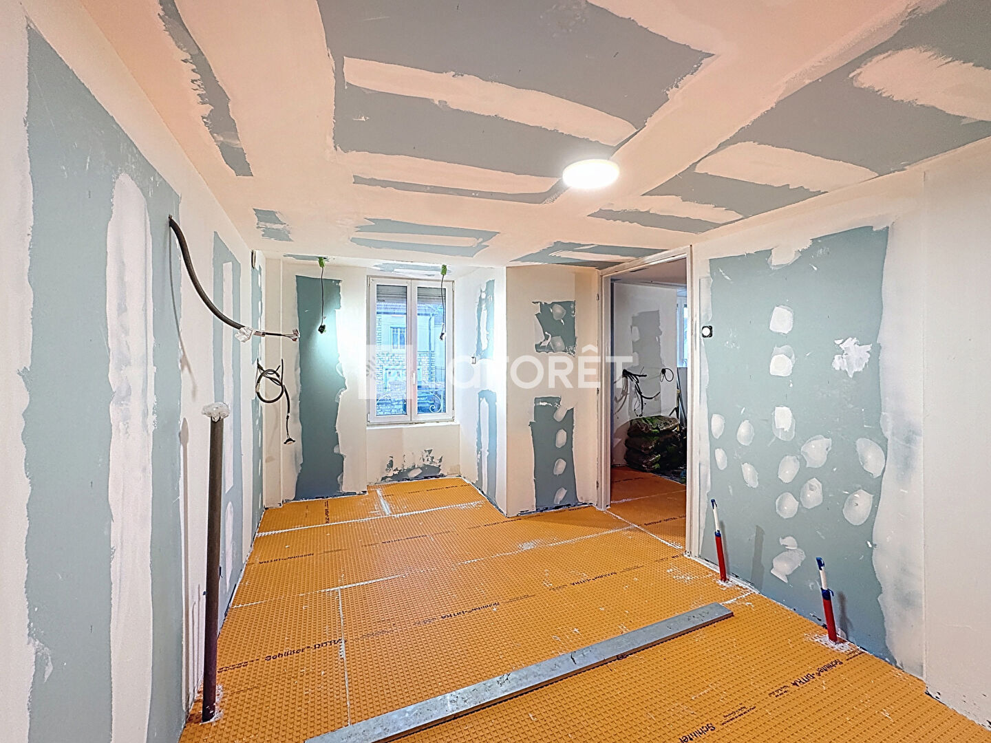 Fin des travaux programmée pour le mois d'avril, la maison comprend au rez de chaussée un espace cuisine, un salon une salle d'eau avec douche, wc, vasque et sèche serviette.
