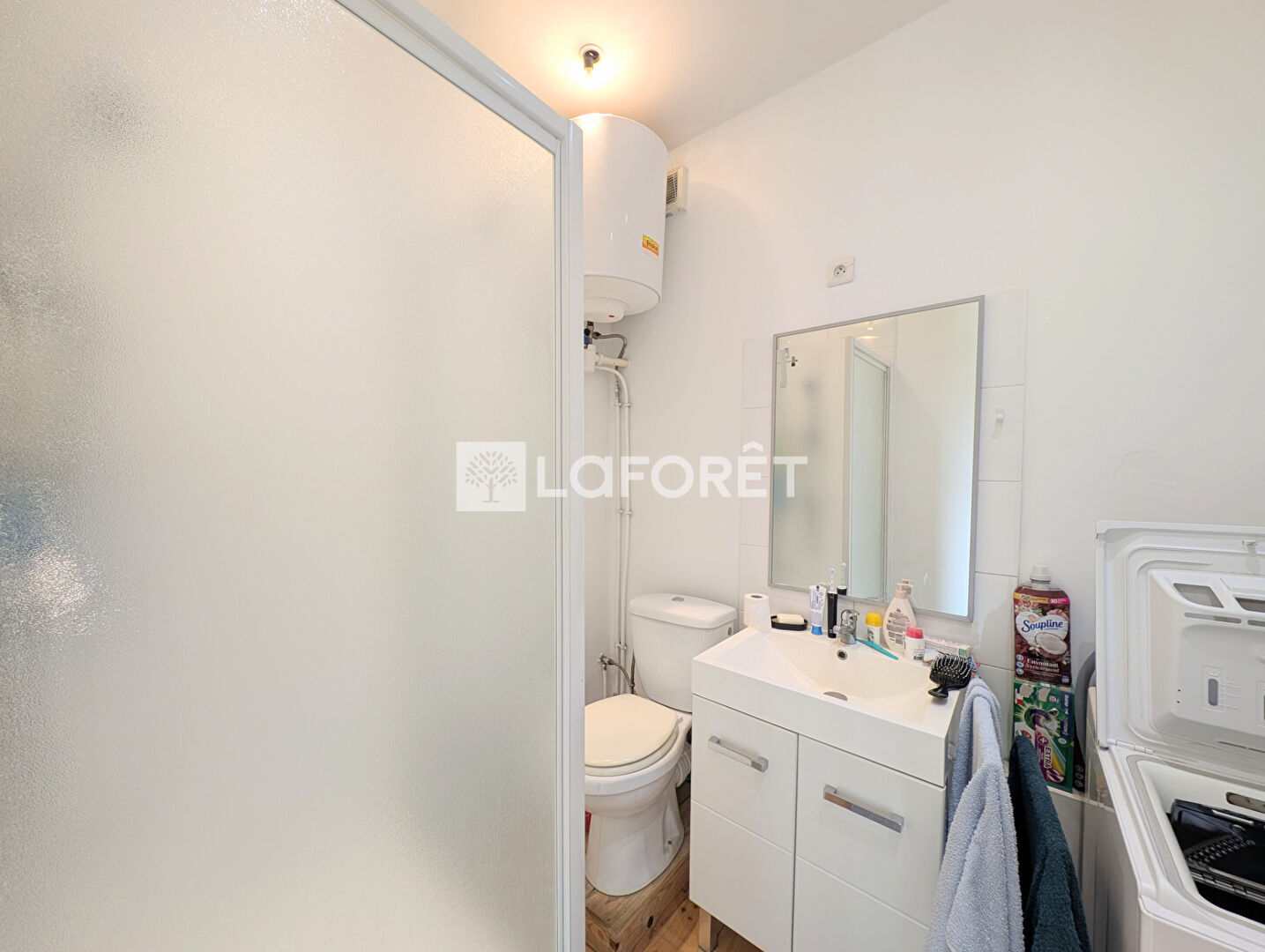 Logement de type studio au 3 ème étage d'un superficie de 22.4 m² composé d'une pièce à vivre lumineuse avec kitchenette, literie et bureau / coin repas. Salle d'eau avec wc.