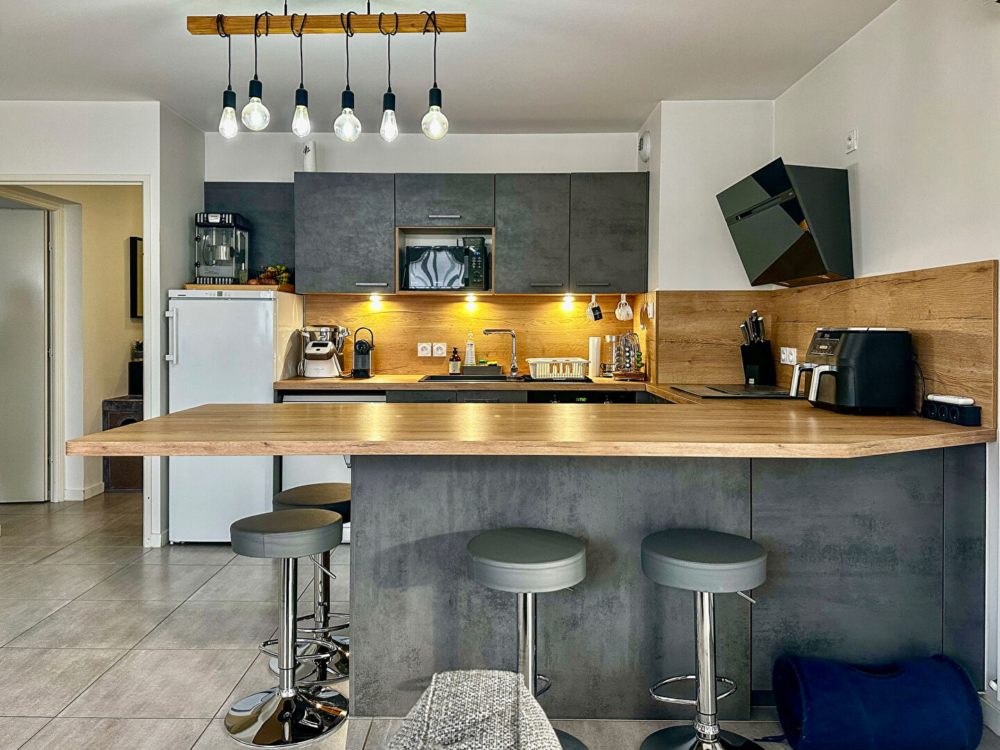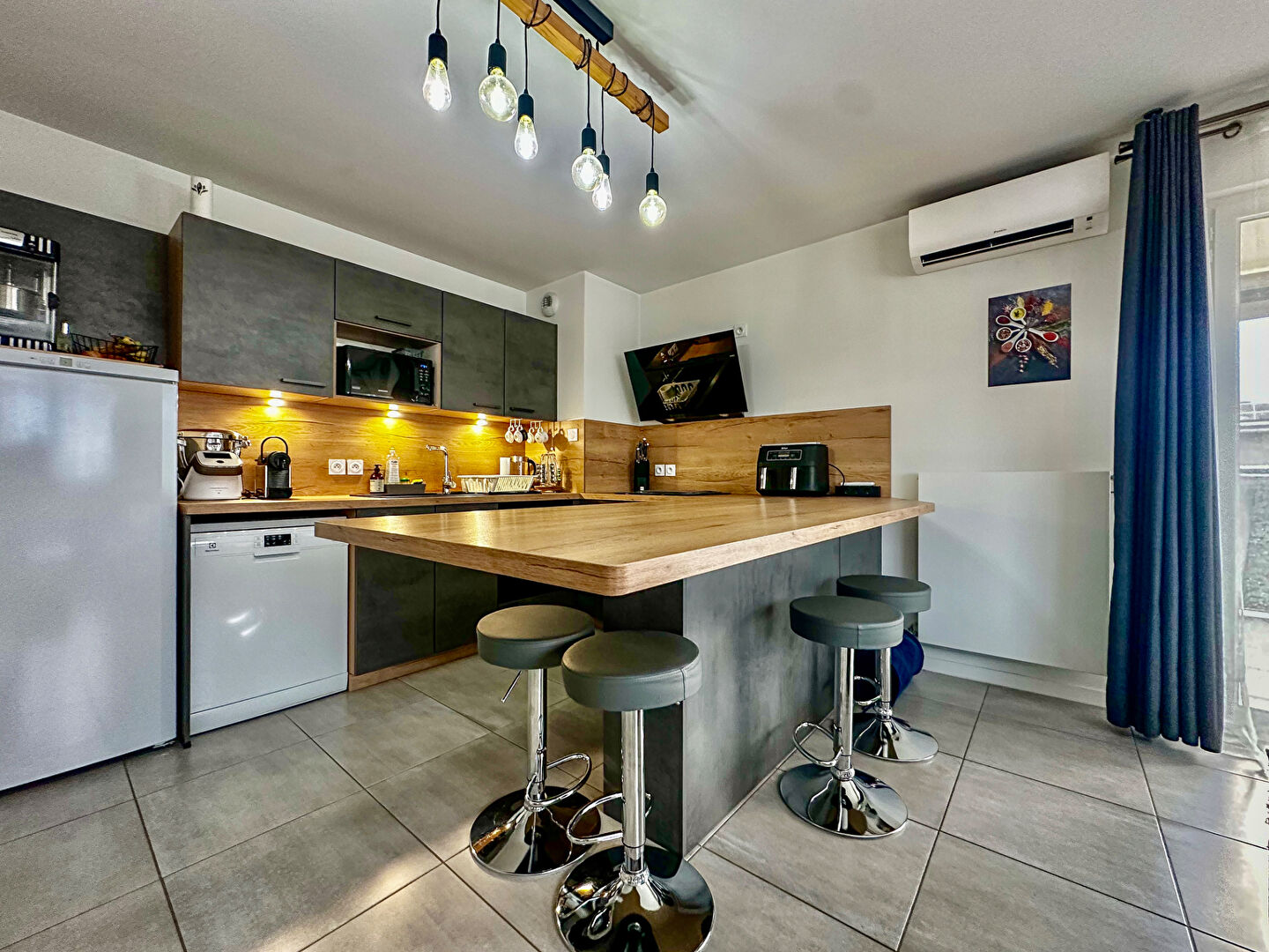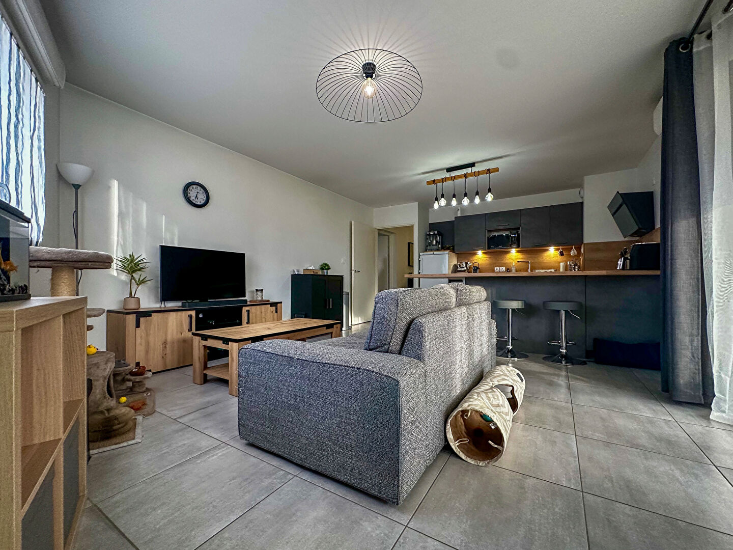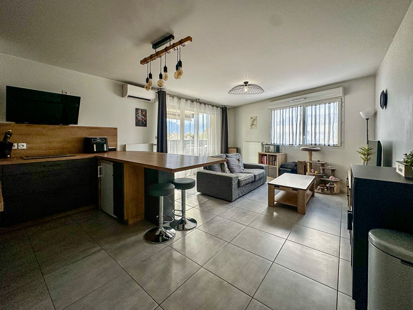 Pièce à vivre avec cuisine ouverte équipée de bonne facture.