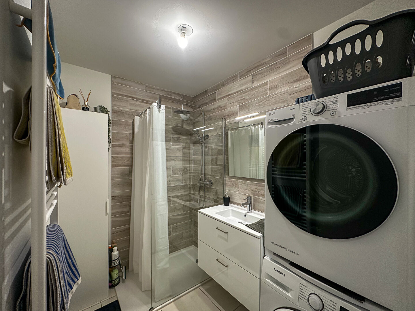Salle d'eau avec douche italienne et emplacement lave-linge.
