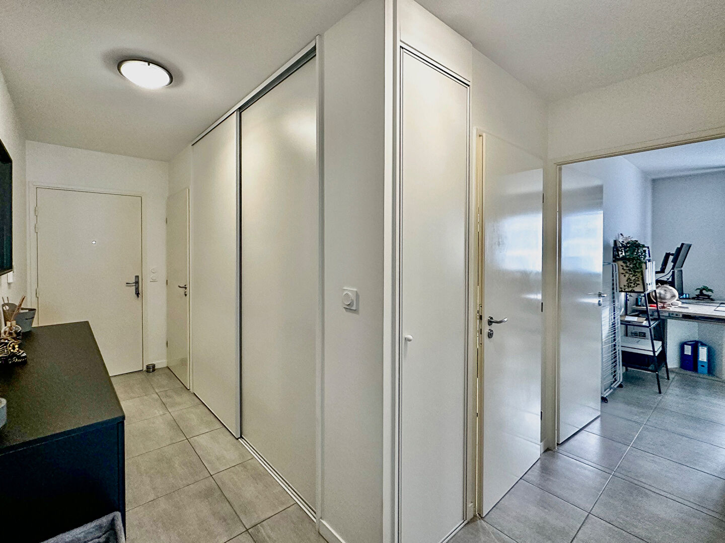 Couloir avec placard qui donne sur toutes les pièces.