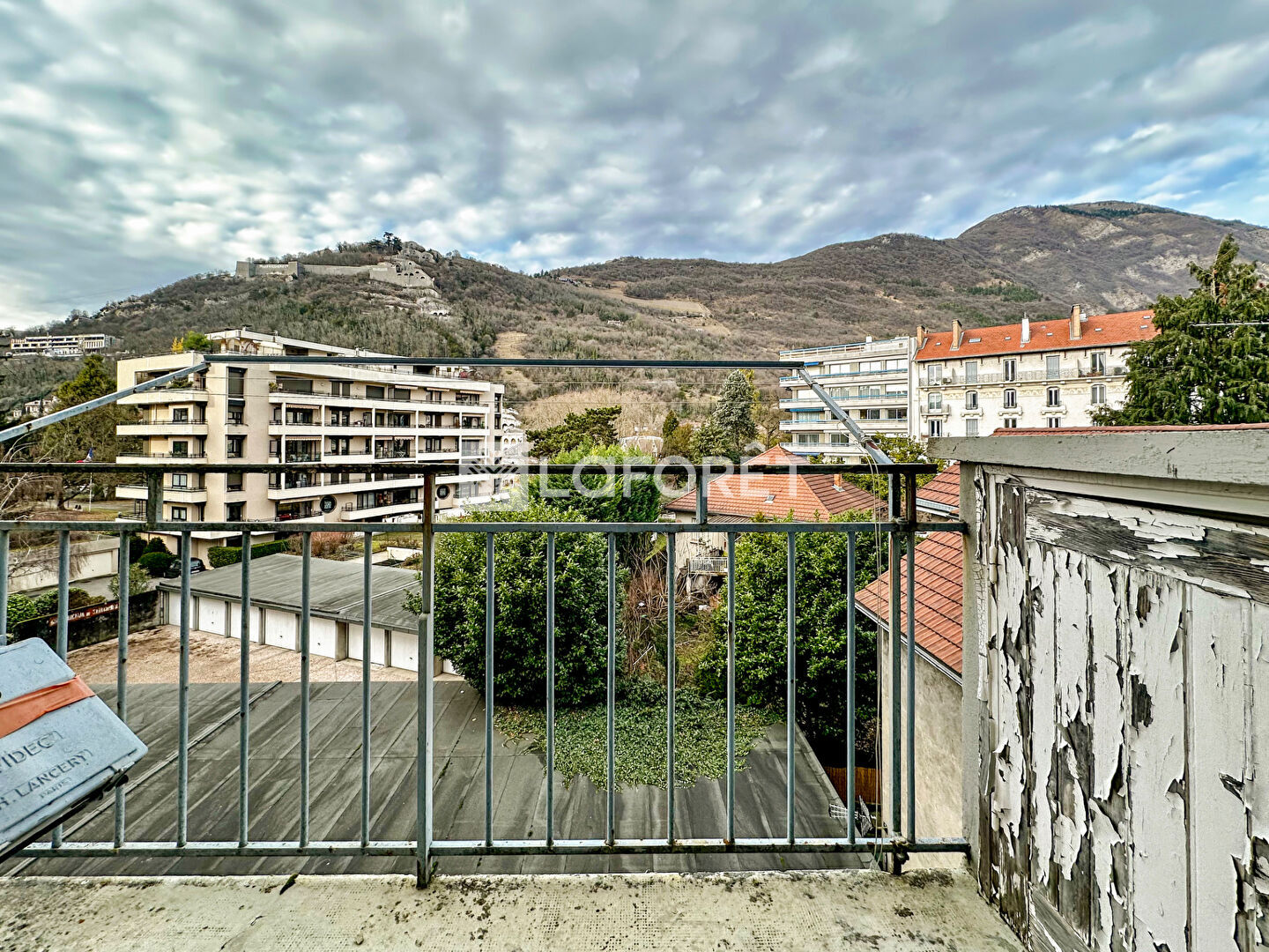Cuisine indépendante équipée sur un balcon d'exposition Nord/Ouest.