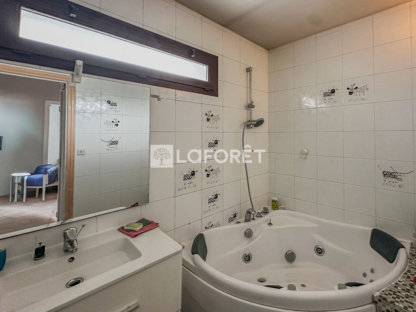 Couloir qui dessert 3 chambres, salle de bains avec baignoire (balnéo) et WC séparé.