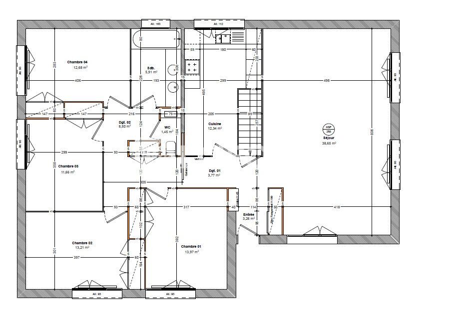 124 m² • 5 pièces • 4 chambres