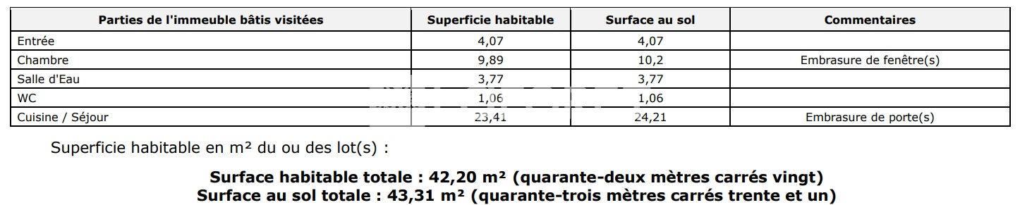 Surface d'environ 42.2 m² composé d'une chambre avec un espace dressing, salle d'eau indépendante du wc .