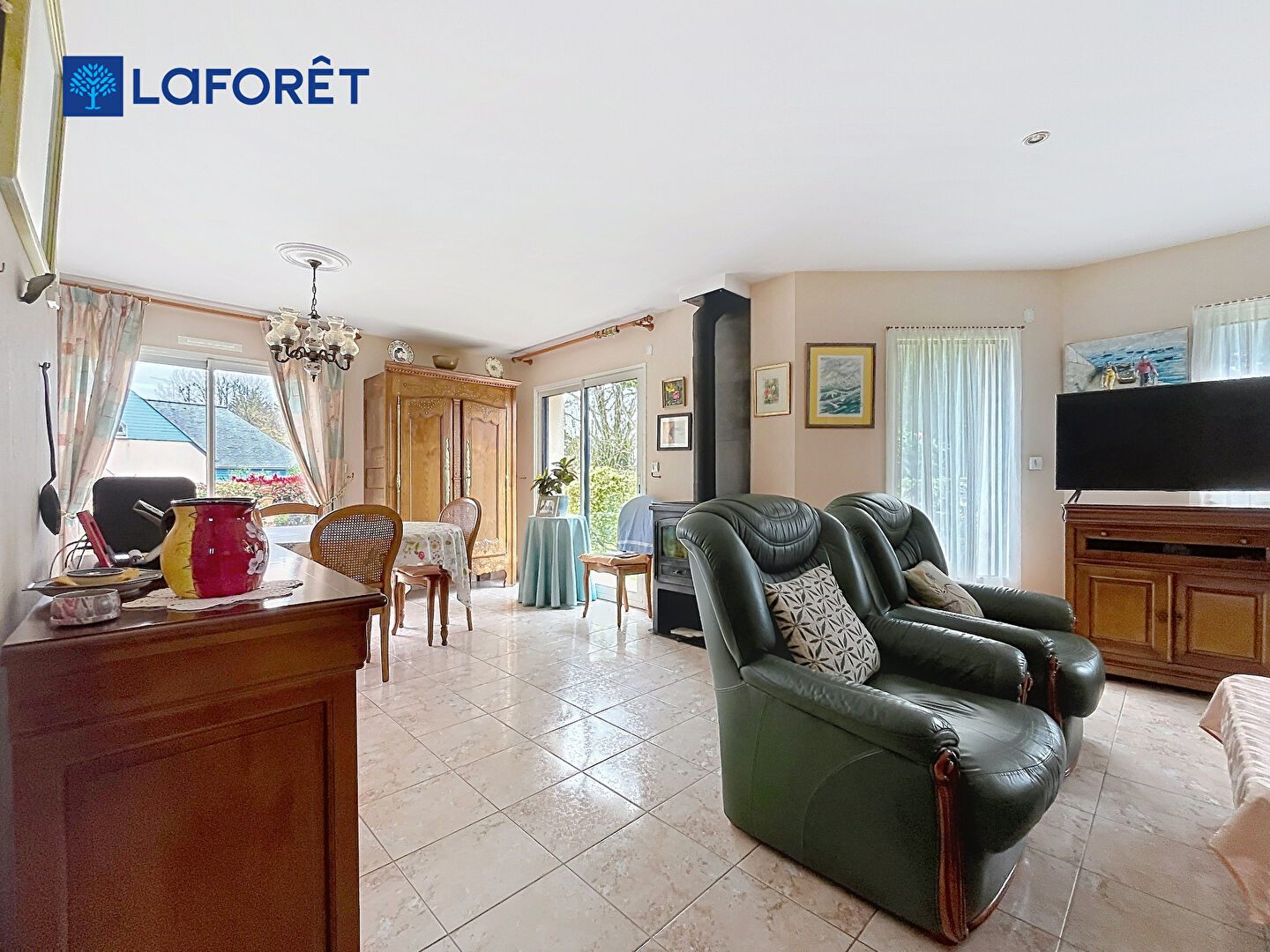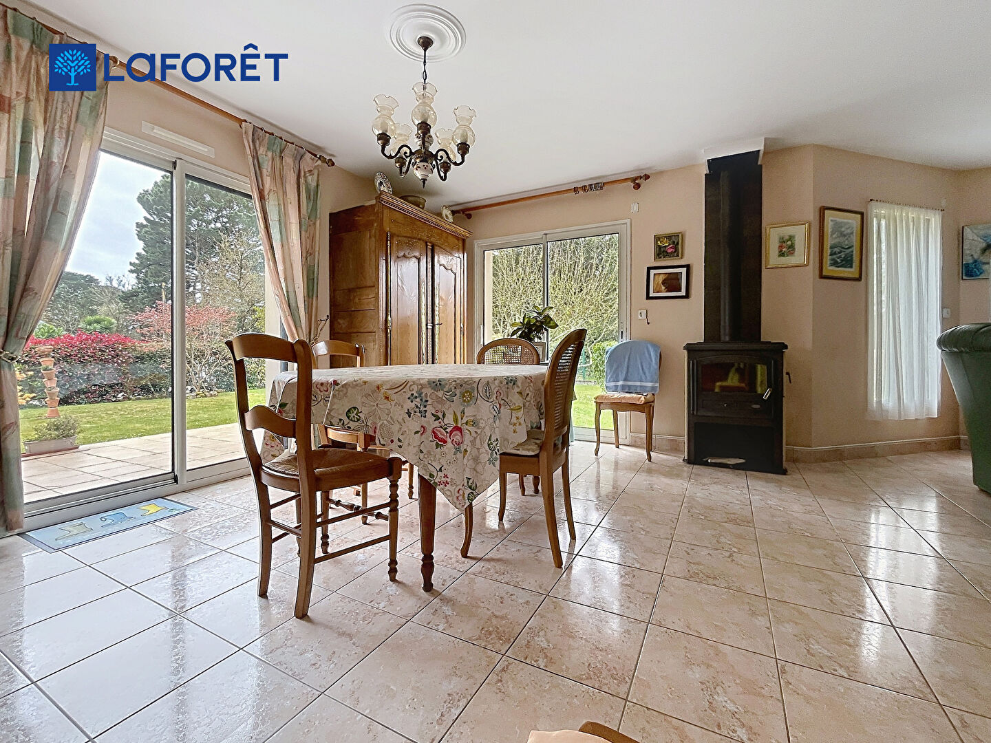 - un lumineux salon-séjour agrémenté d'un poêle à bois,